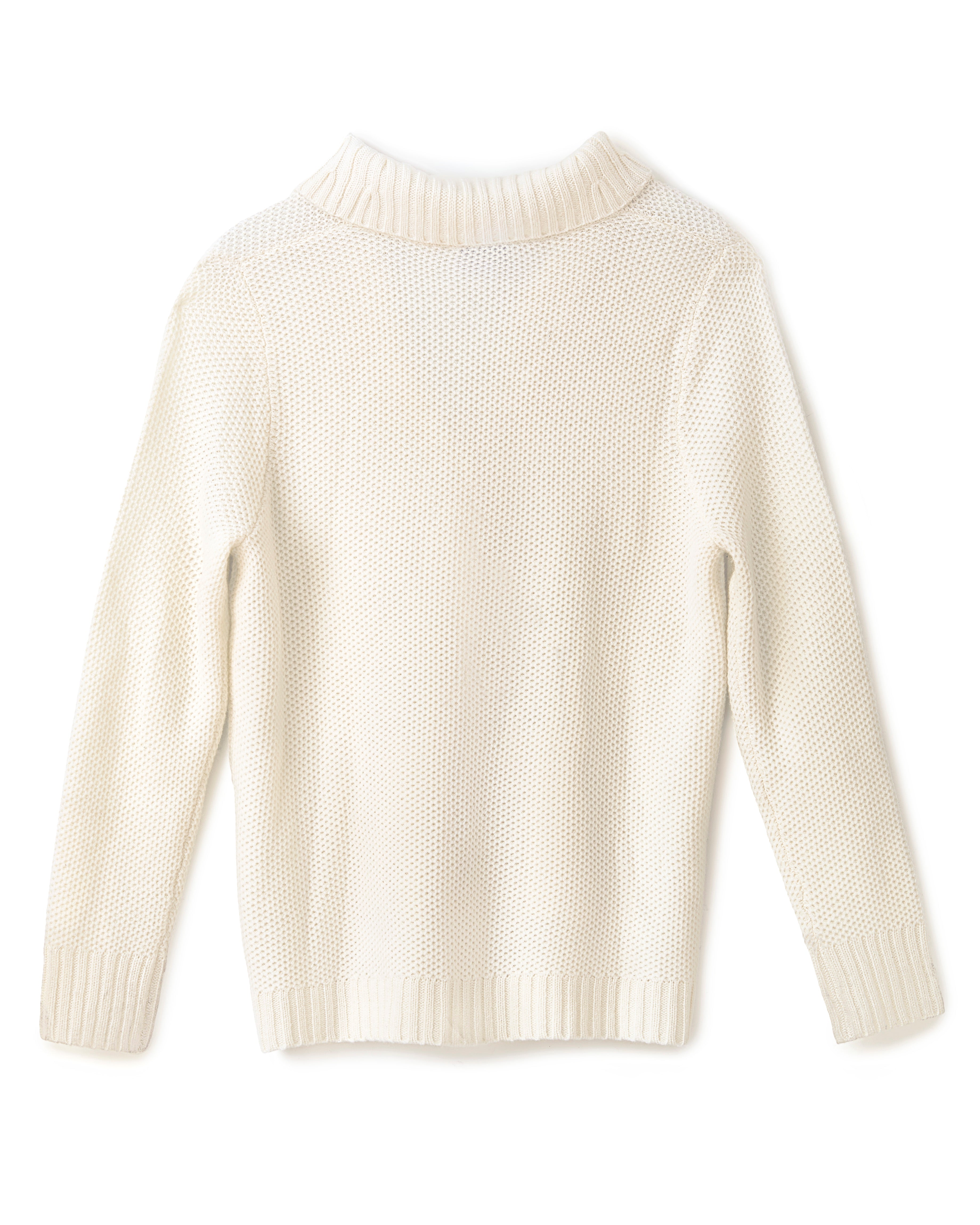 • Cashmere-wool blend with relaxed, hip-length silhouette