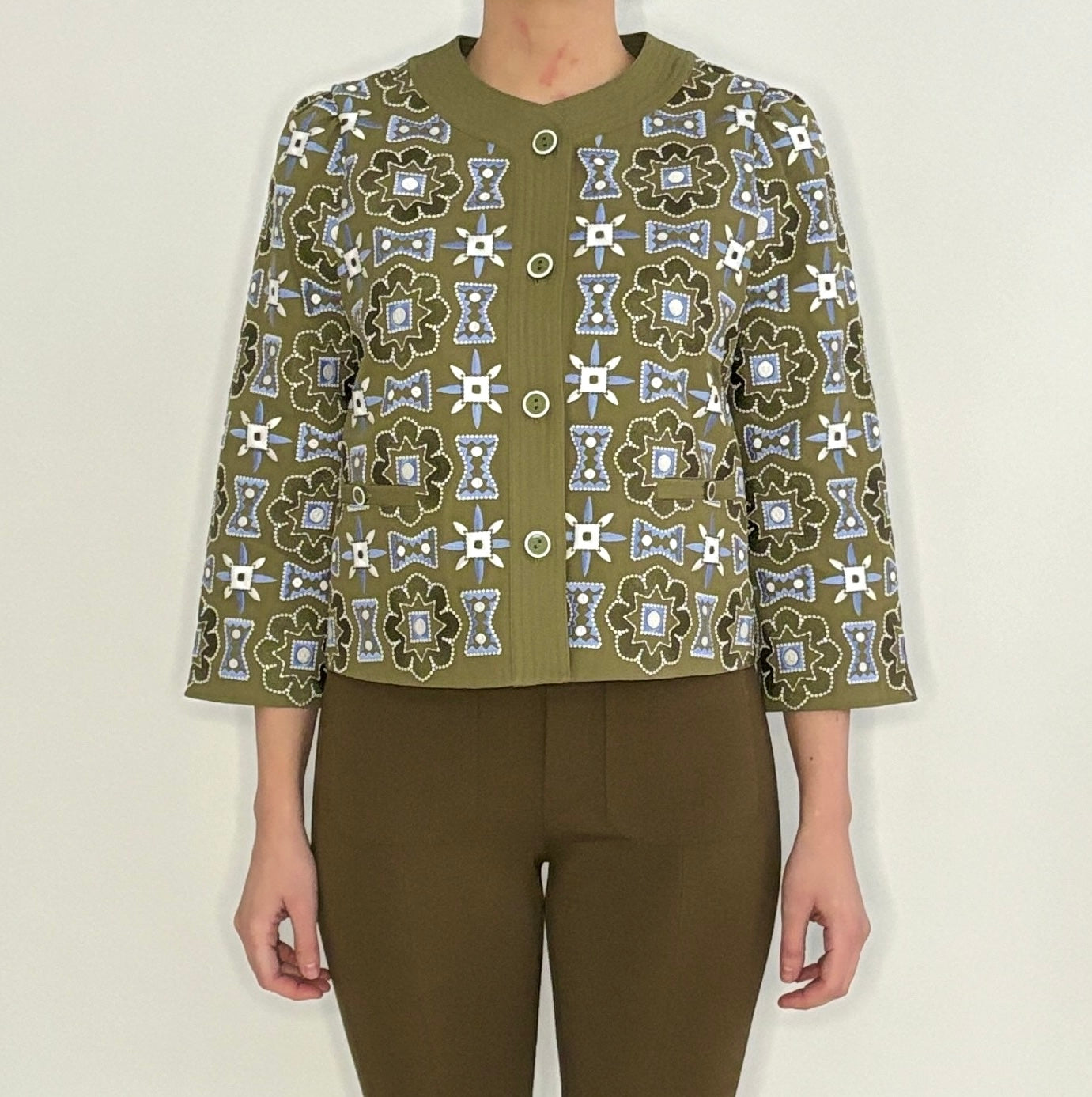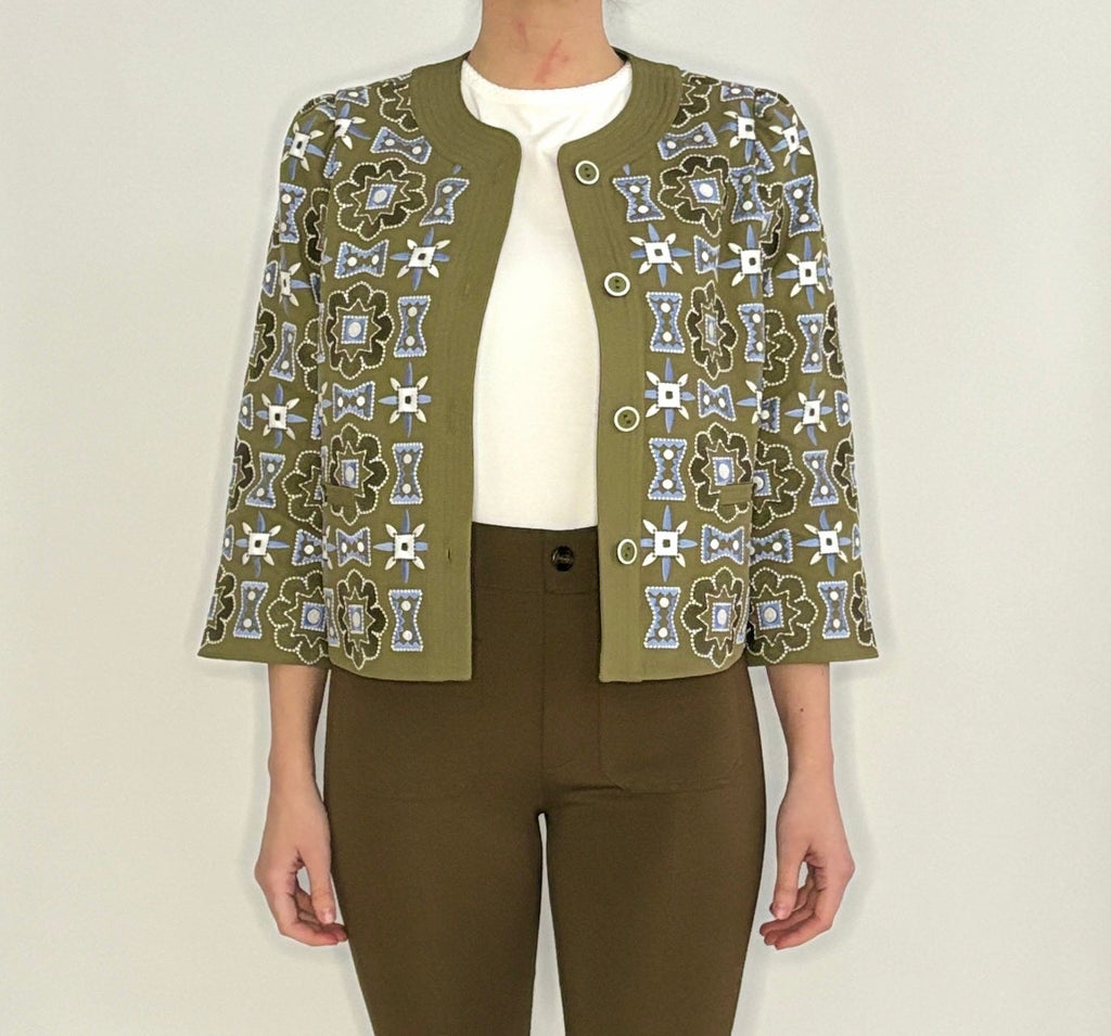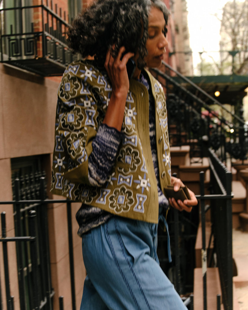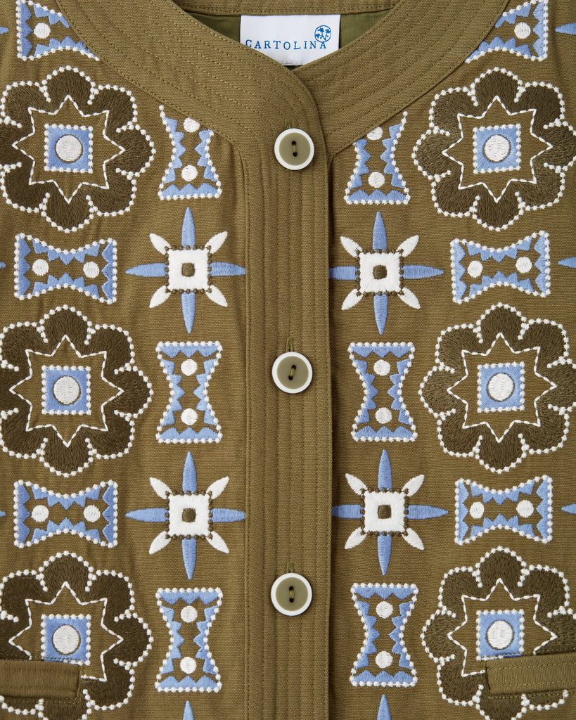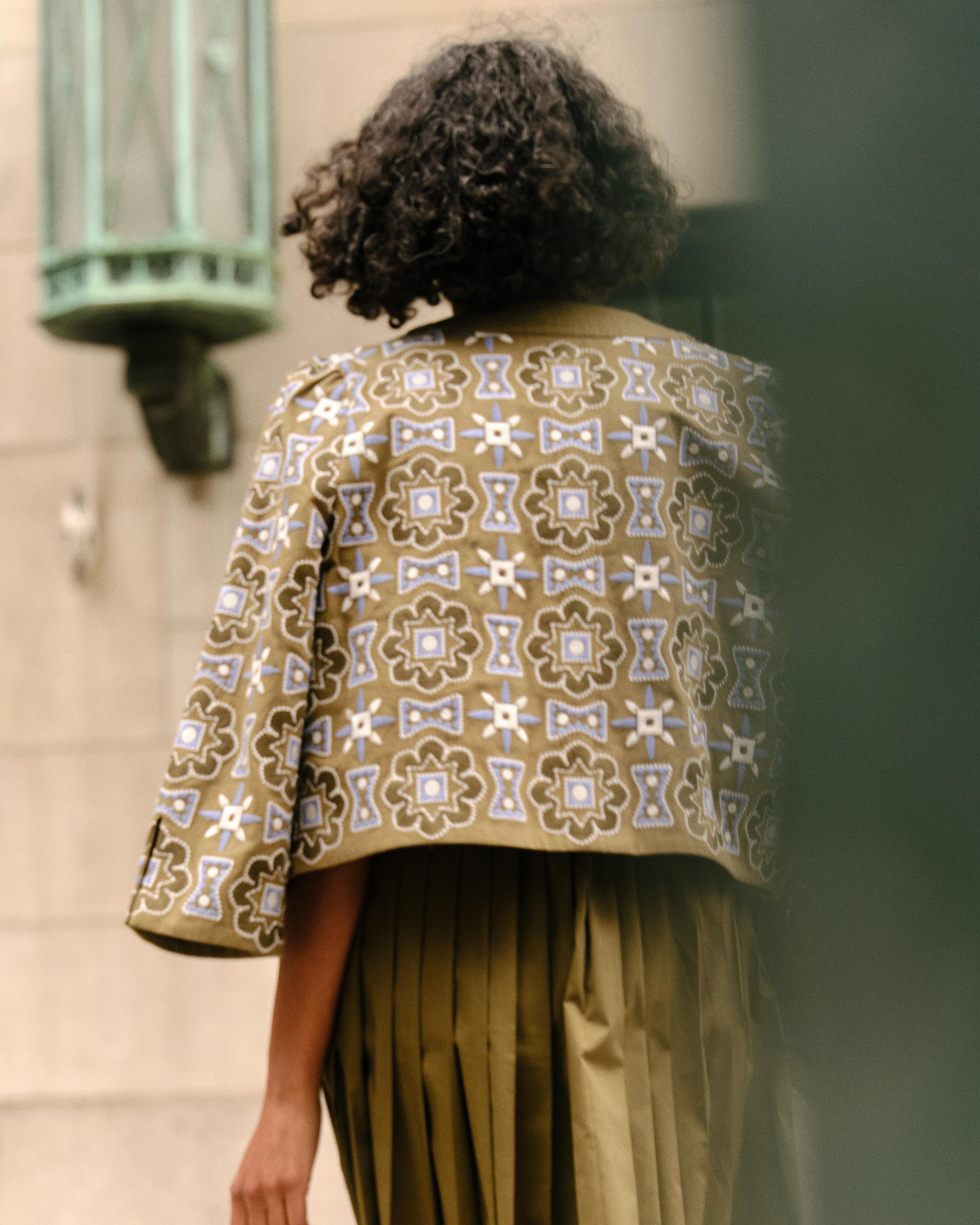 A true statement piece, the Dakota Jacket in Military Green brings story and strength to every layer—its intricate embroidery and tailored shape offering a sense of substance without weight. It’s a piece that draws you in, detail by detail.