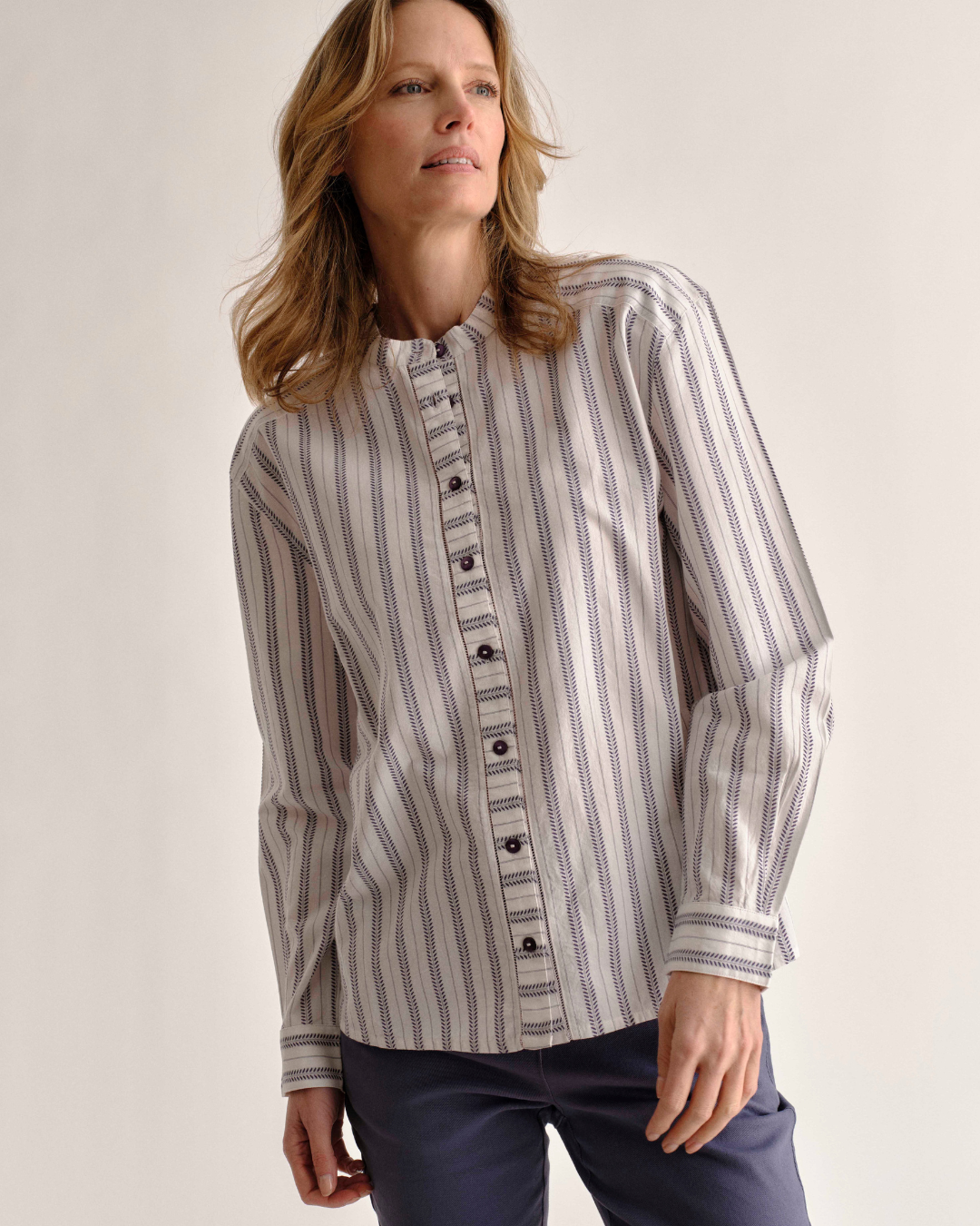 Rosalie Shirt-Coastal Indigo Stripe