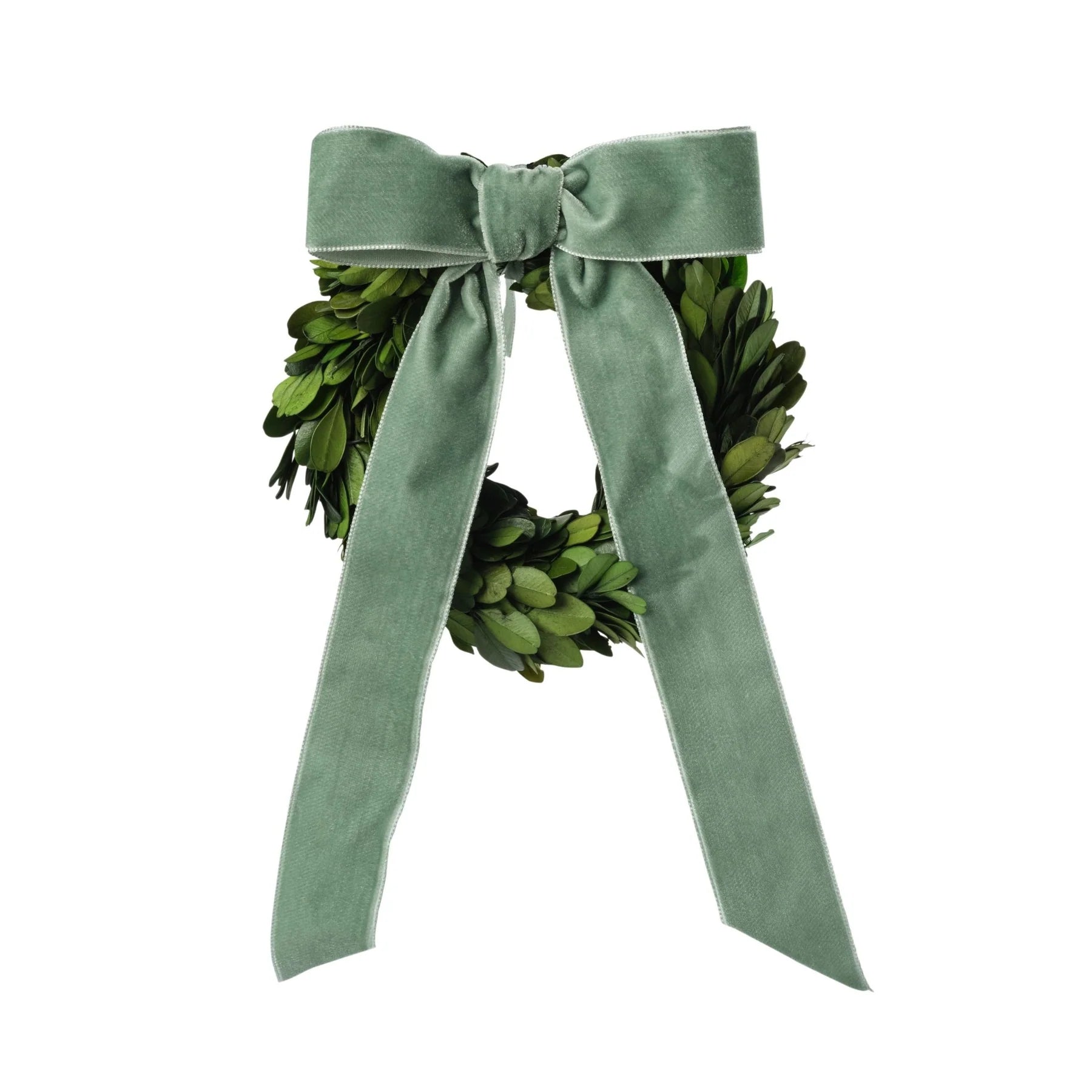 Preserved Boxwood Wreath with Island Green Ribbon - Small
