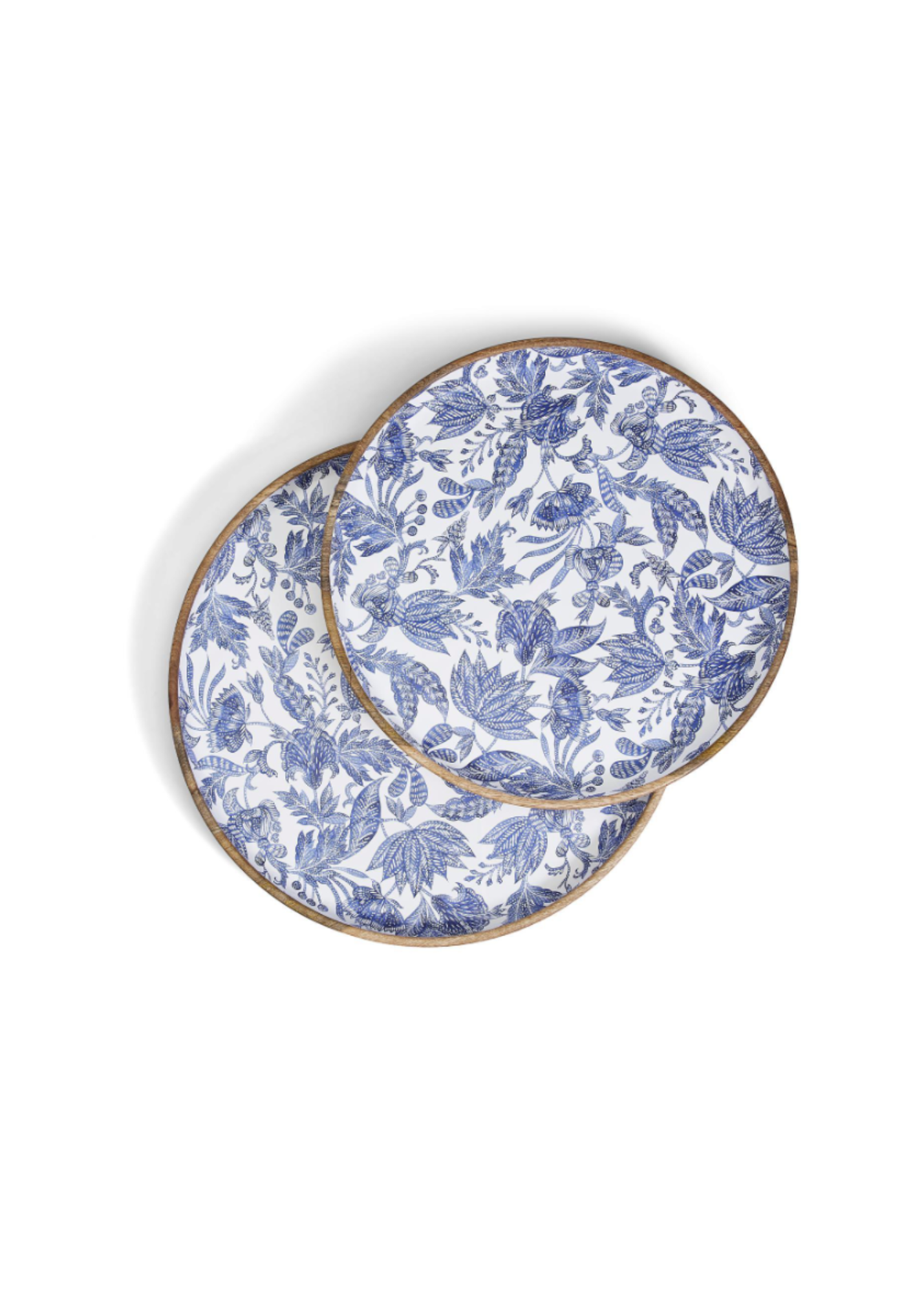 Mango wood never looked so good after we enhanced these tabletop accessories with our vibrant blue Batik design. The soft and smooth enameled surface contrasted with the grain and natural look of the wood will serve as a great accessory in your home.