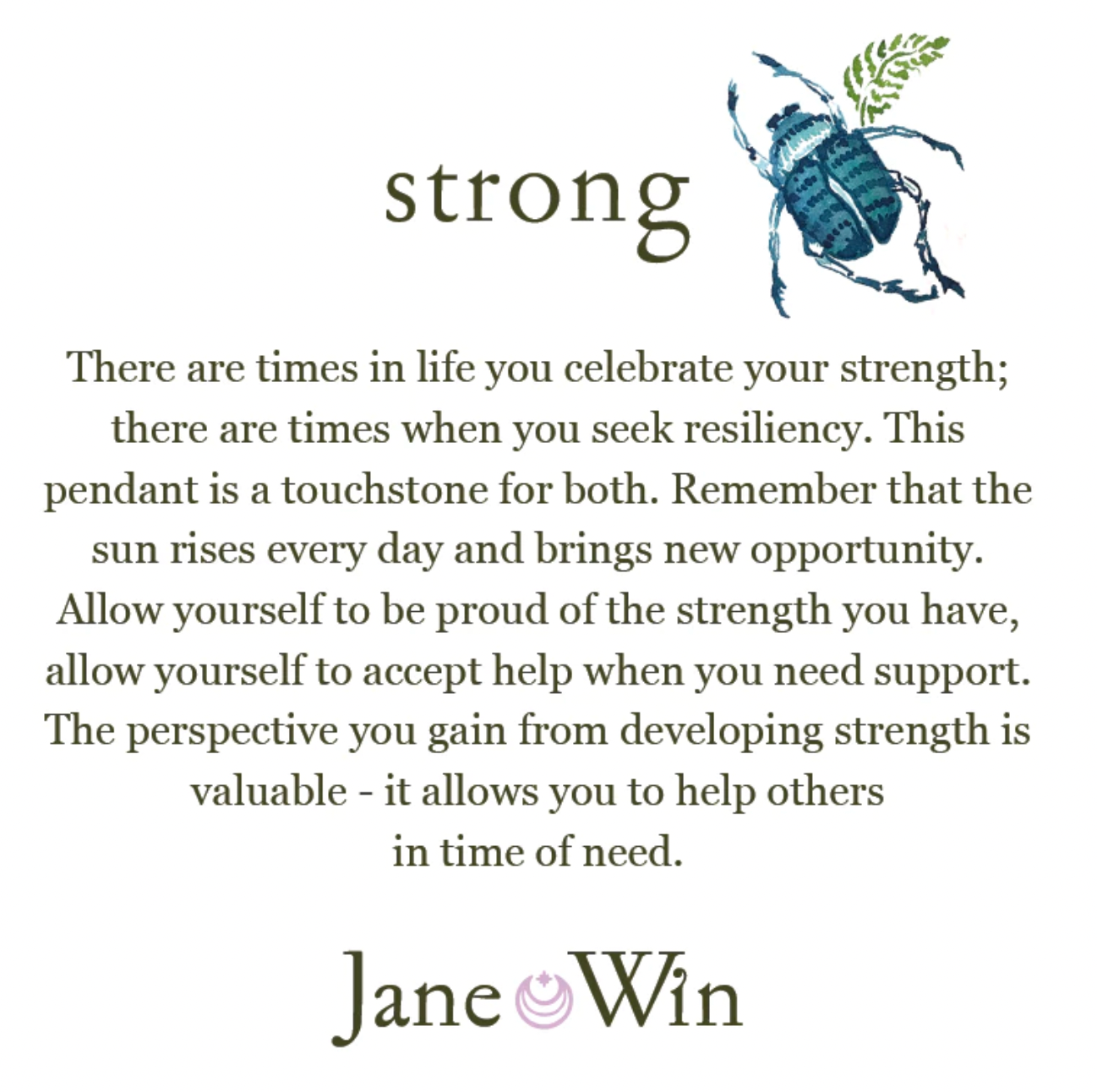 There are times in life you celebrate your strength; there are times when you seek resiliency. This pendant is a touchstone for both. Remember that the sun rises every day and brings new opportunity. Allow yourself to be proud of the strength you have, allow yourself to accept help when you need support. The perspective you gain from developing strength is valuable - it allows you to help others in time of need.