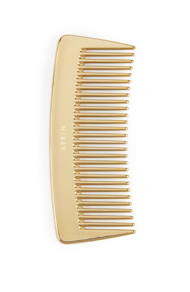 As pretty as it is practical this small gold comb made in Italy is a luxurious interpretation of a classic style Just the right size and light weight for travel it adds a subtle touch of luxury when on-the-go.