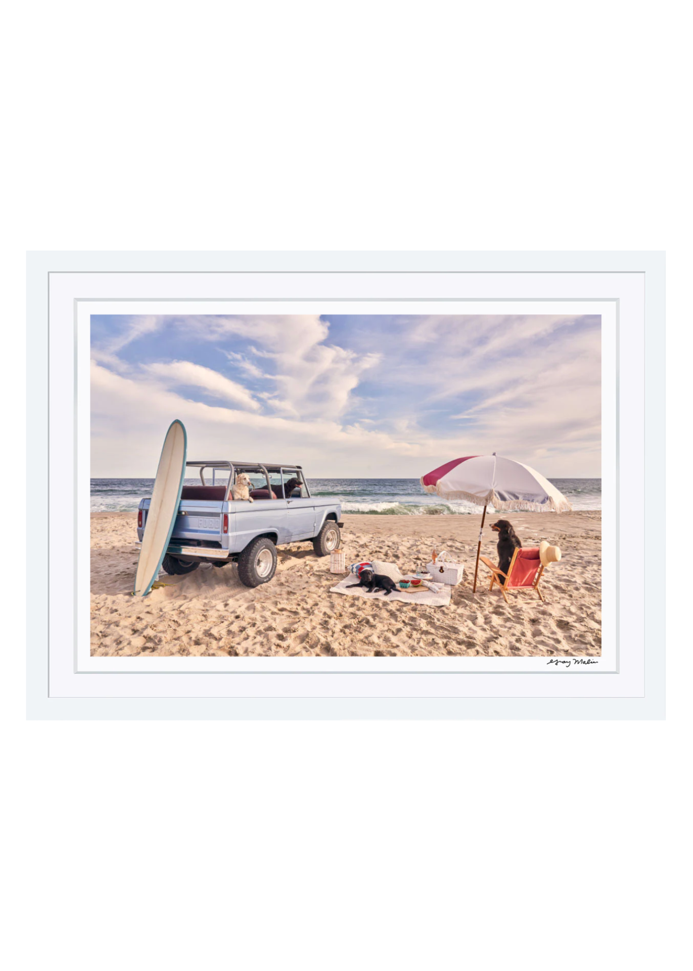 These pups are fully prepared for an unforgettable beach day in BEACH PICNIC, NANTUCKET from the series Gray Malin on Nantucket.