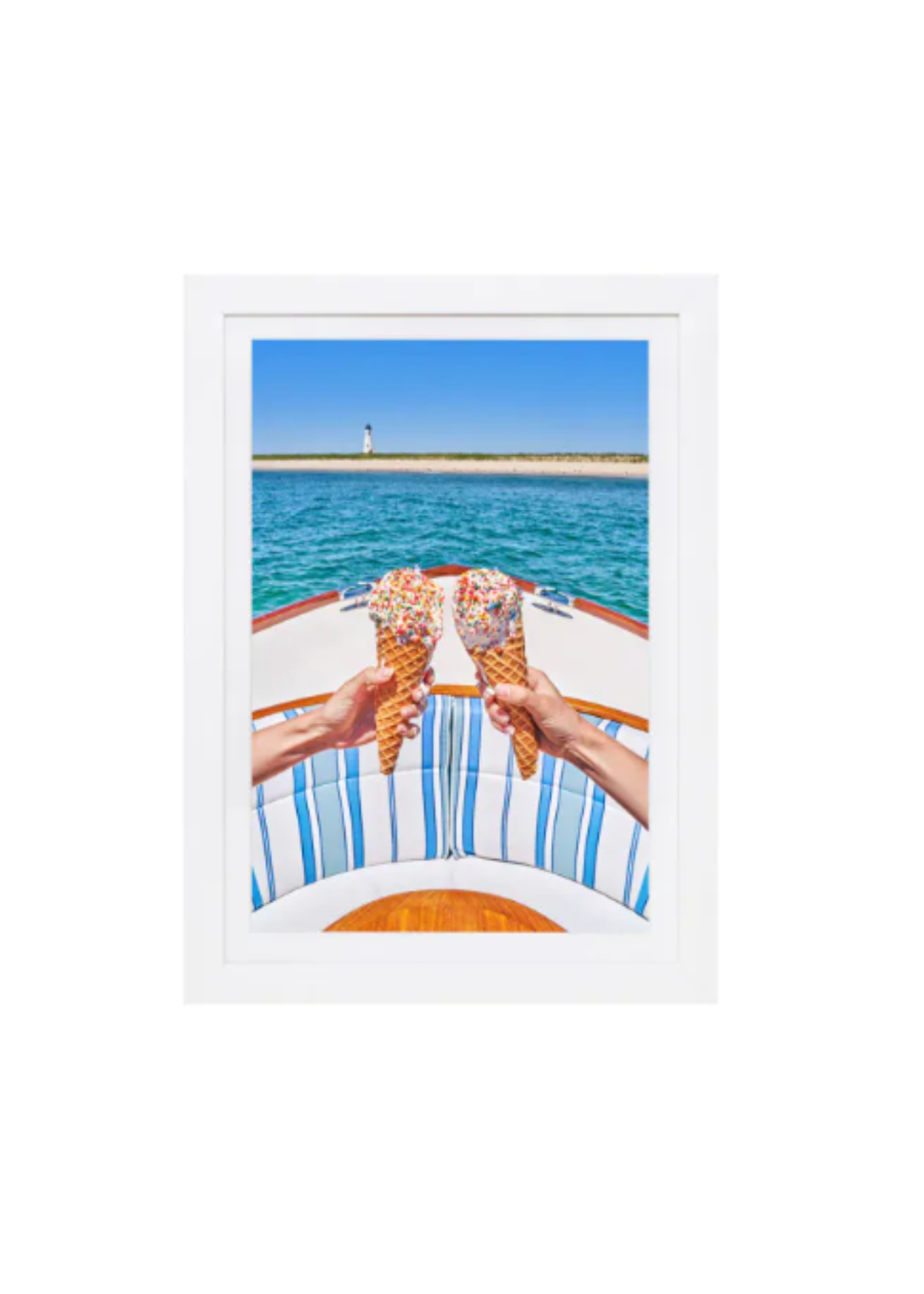Celebrate the memories of summer with ICE CREAM CONE CHEERS, NANTUCKET, available for a limited time exclusively in our mini size. With prints selected by Gray himself, the Gray Malin Miniatures are unsigned, non-edition framed prints. The premium hardwood frame molding in matte white is compactly sized at 10” x 13.5” with heat-activated foam board backing and UV-blocking acrylic glass, which protects against 91% of UV Rays. Available for a very limited time , the Gray Malin Miniatures are the perfect accent to any decorative space.