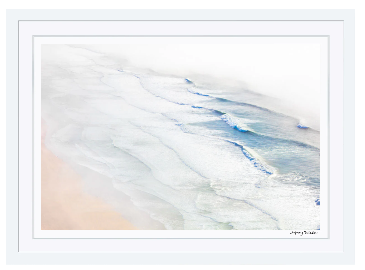 Capture the serene beauty of San Francisco’s coastal charm with “Ocean Beach Waves, San Francisco,” a stunning example of fine art photography from Gray Malin’s beloved “À la Plage” series. Gray fatefully shot this image through an ocean fog which elevates this image to a dreamlike state. This art print beautifully portrays misty beach scenes and pastel skies, transporting you to a peaceful seaside escape. Perfect for those who crave a touch of tranquility and natural elegance in their decor.