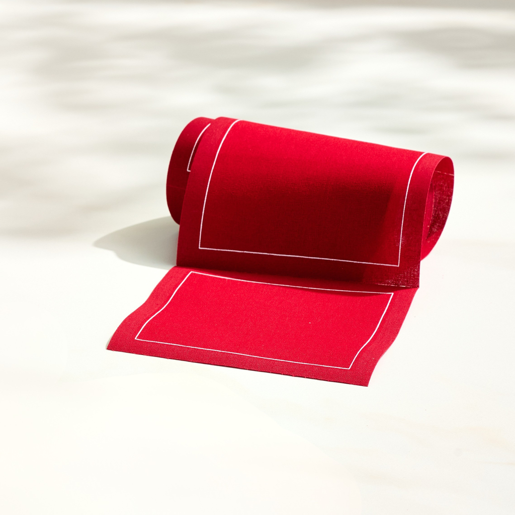 Solid Red Luxury Roll of Disposable Cotton Cocktail Napkins
