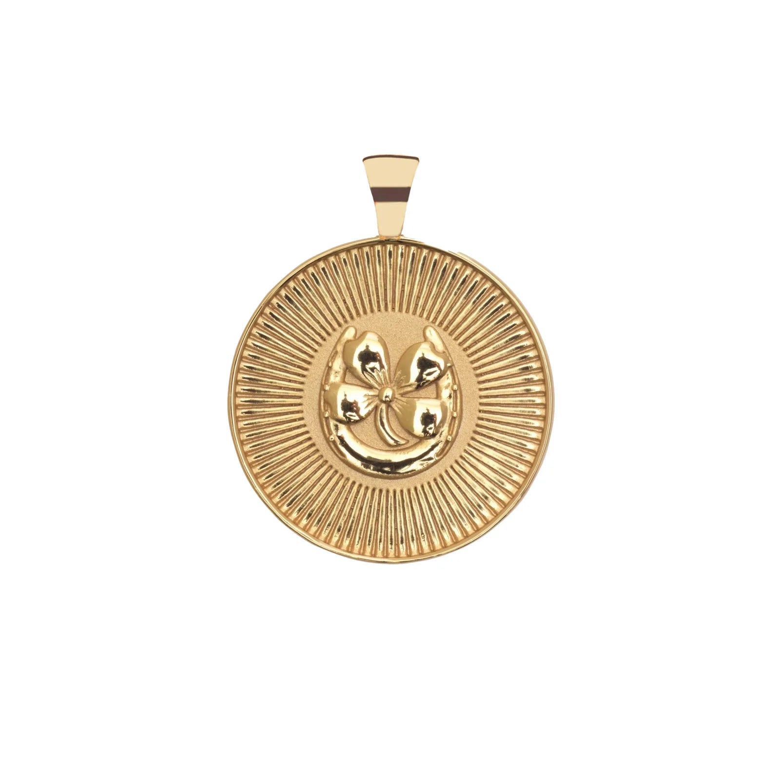 We like to think that optimism brings positivity around us, but sometimes good things just happen by chance, that's luck! Whether you are born with it or you are seeking more of it, being LUCKY comes in streaks. This pendant is adorned with a lucky four-leaf clover and a lucky horseshoe. Wear it as a daily touchstone to remind you to look for the positive and more positive will come your way!
