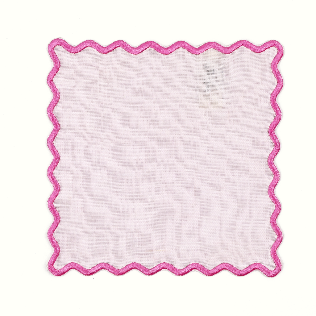 Scalloped Pink Linen Square Cocktail Napkins - Set of 4