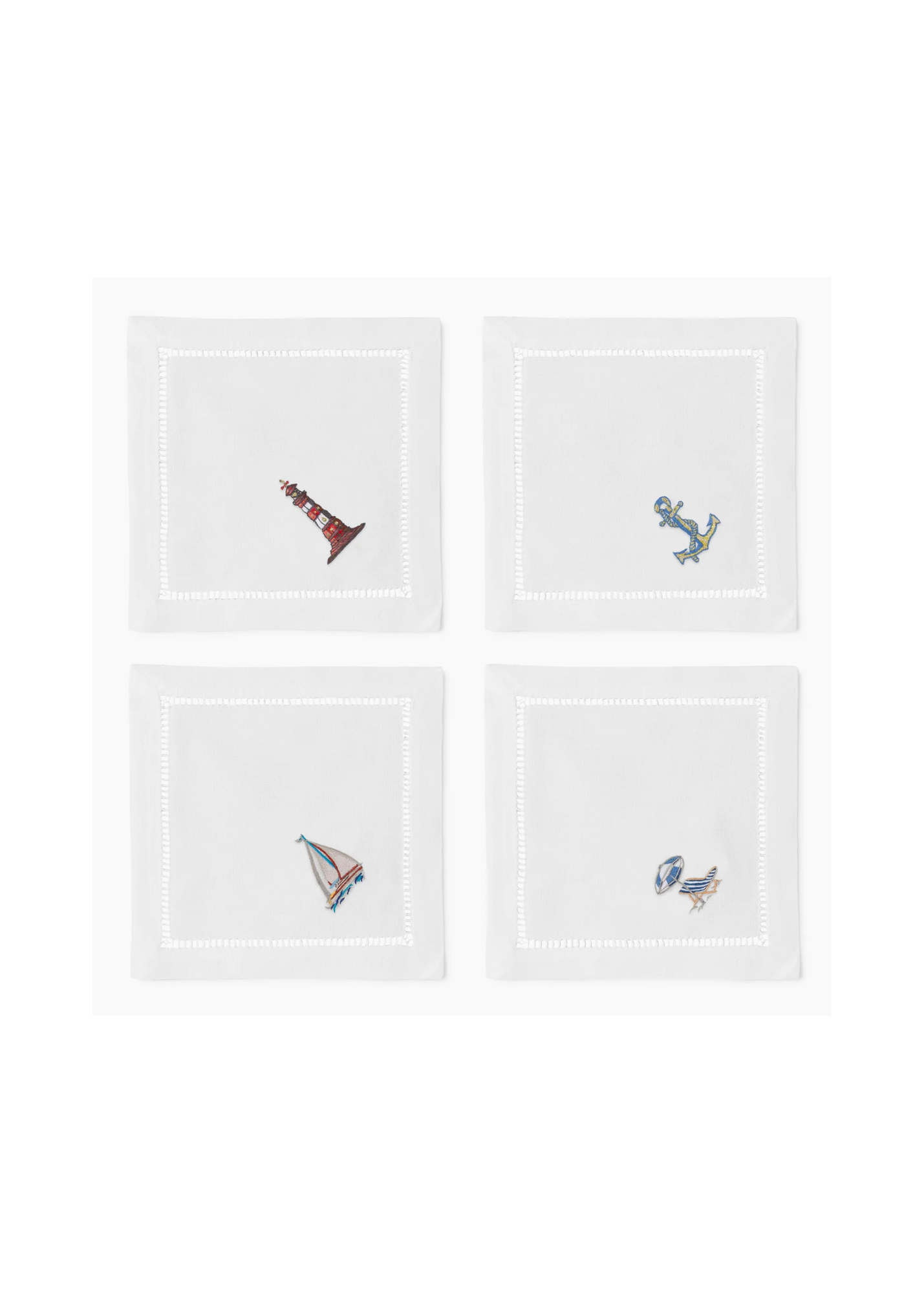 Hand embroidered cocktail napkins on 100% cotton, finished and hemstitched by hand.