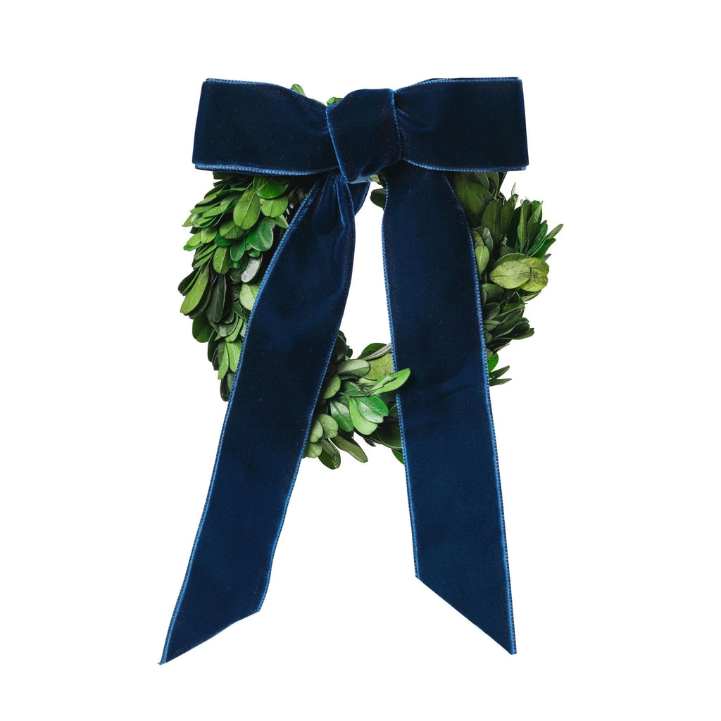 Preserved Boxwood Wreath with Navy Blue Ribbon - Small