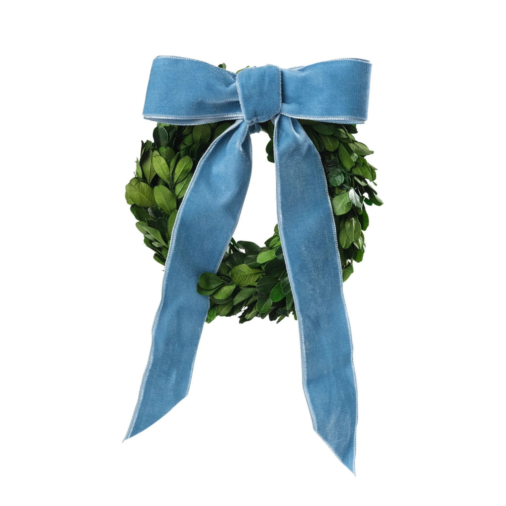 Preserved Boxwood Wreath with Dusty Blue Ribbon - Small