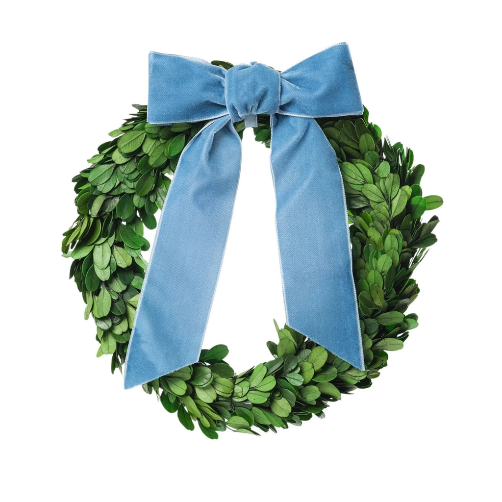 Preserved Boxwood Wreath with Dusty Blue Ribbon - Large