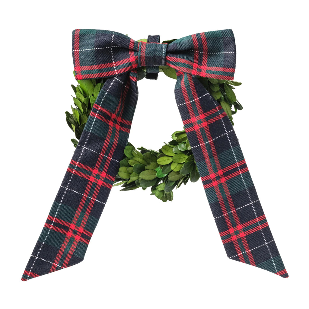 Boxwood Wreath with Christmas Tartan Bow - Small