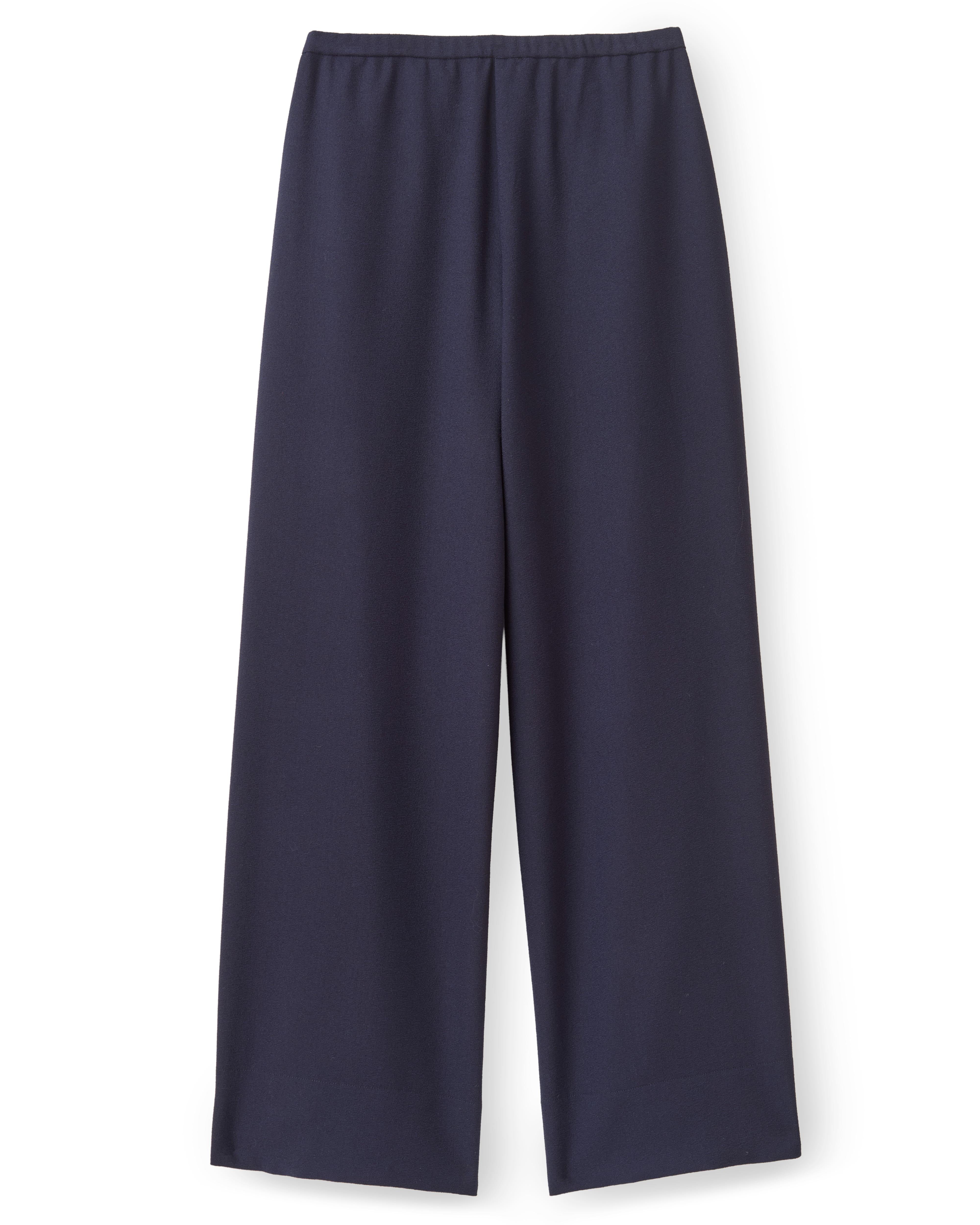 Meet your new best friend, the Mia Pant in dark navy, midweight pebbled crepe. The flat front, elastic back waistband with relaxed thigh and leg opening creates an easy to wear pant to dress up and dress down.
