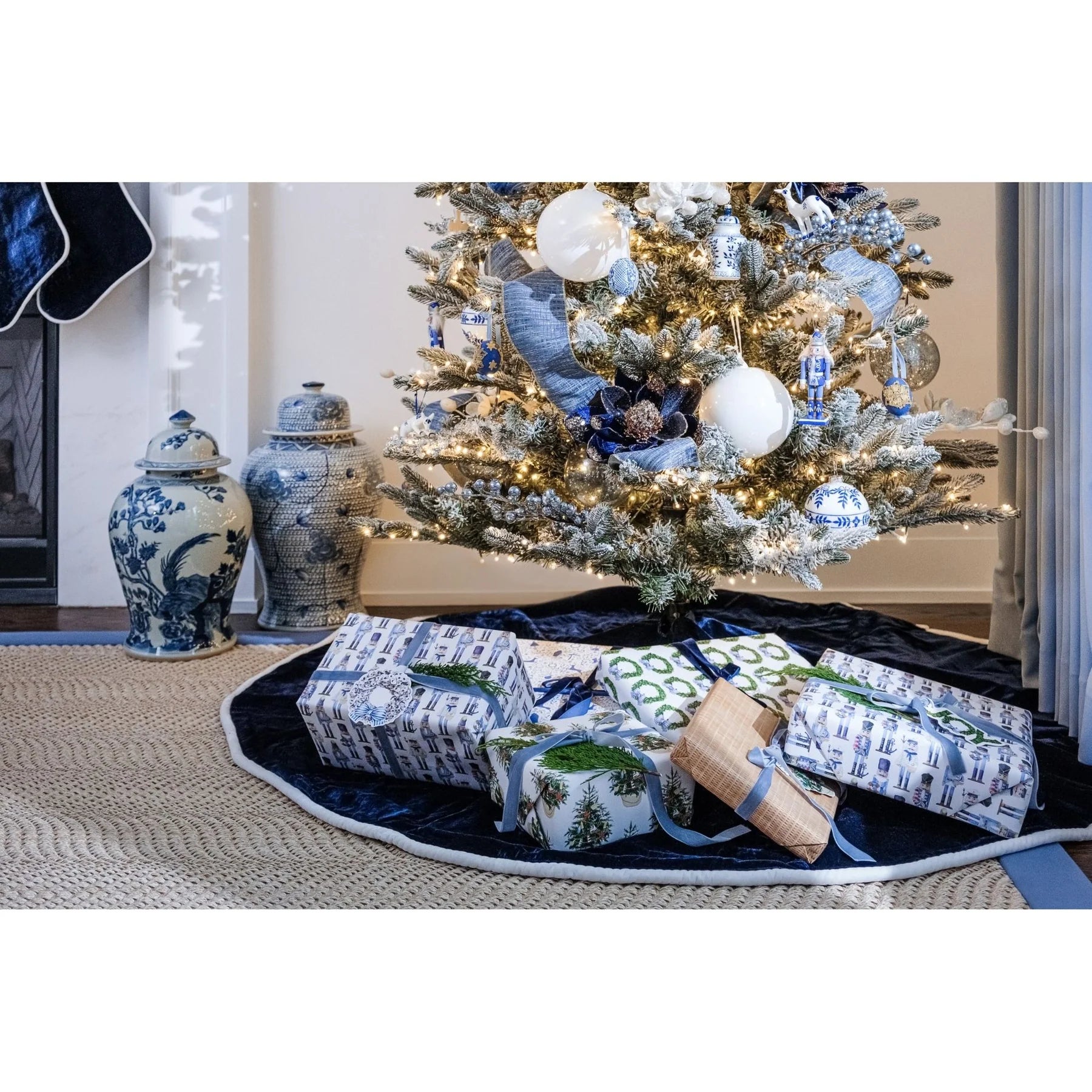 Capture the serene magic of Christmas by the coast with our exclusive Velvet Christmas Tree Skirts, ensuring your home exudes both warmth and coastal charm this holiday season. Crafted from navy blue plush velvet accentuated by a delicate white piping and button enclosures, this tree skirt will bring a touch of coastal elegance to your seasonal decor, evoking the tranquil atmosphere of a Christmas by the sea.