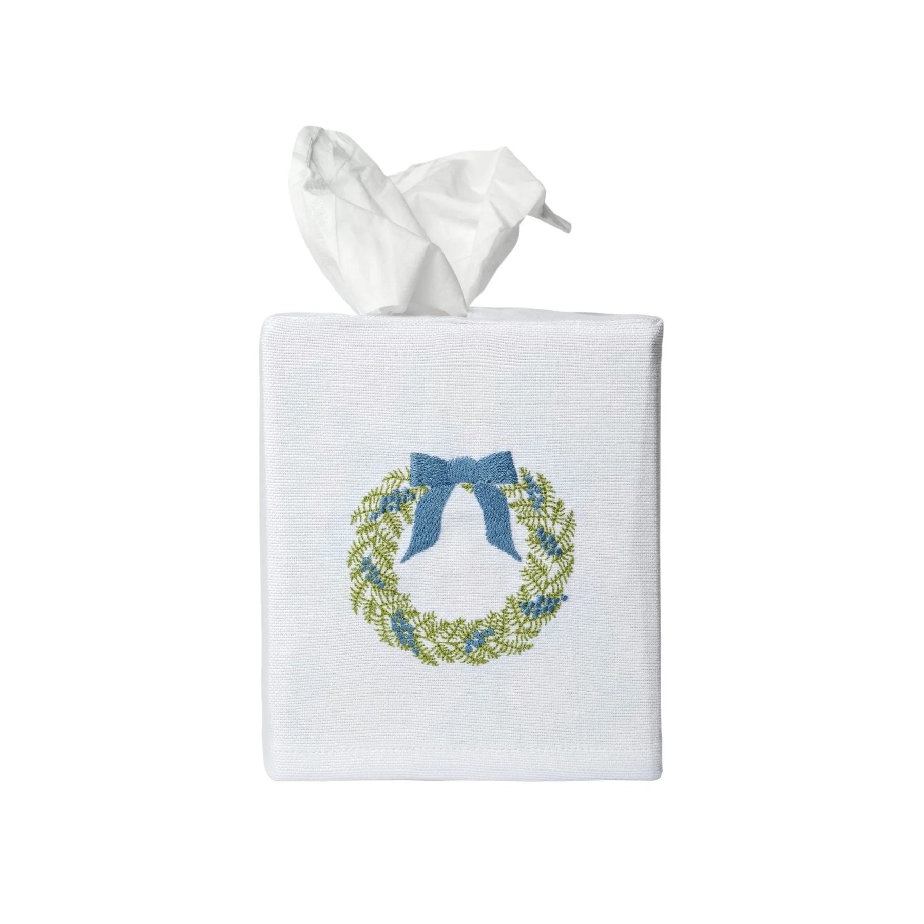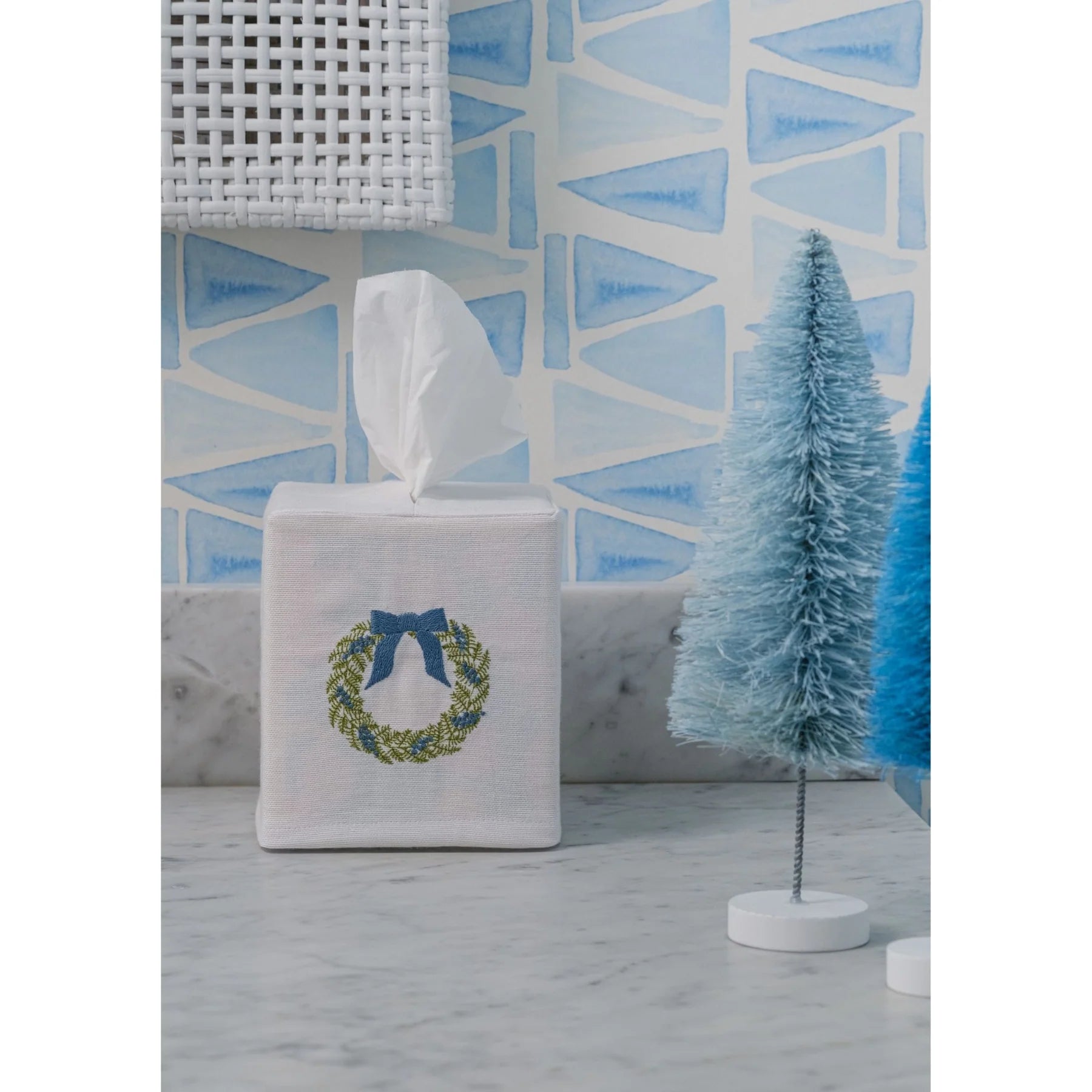 Add a touch of grandmillennial charm to your holiday decor with our Holiday Wreath Tissue Box Cover. Featuring beautiful embroidery of a classic holiday wreath topped with a festive blue bow, this cover is perfect for bringing festive elegance to any space. Whether placed in the living room or a guest bathroom, it’s a stylish way to incorporate holiday decor into even the smallest details of your home.
