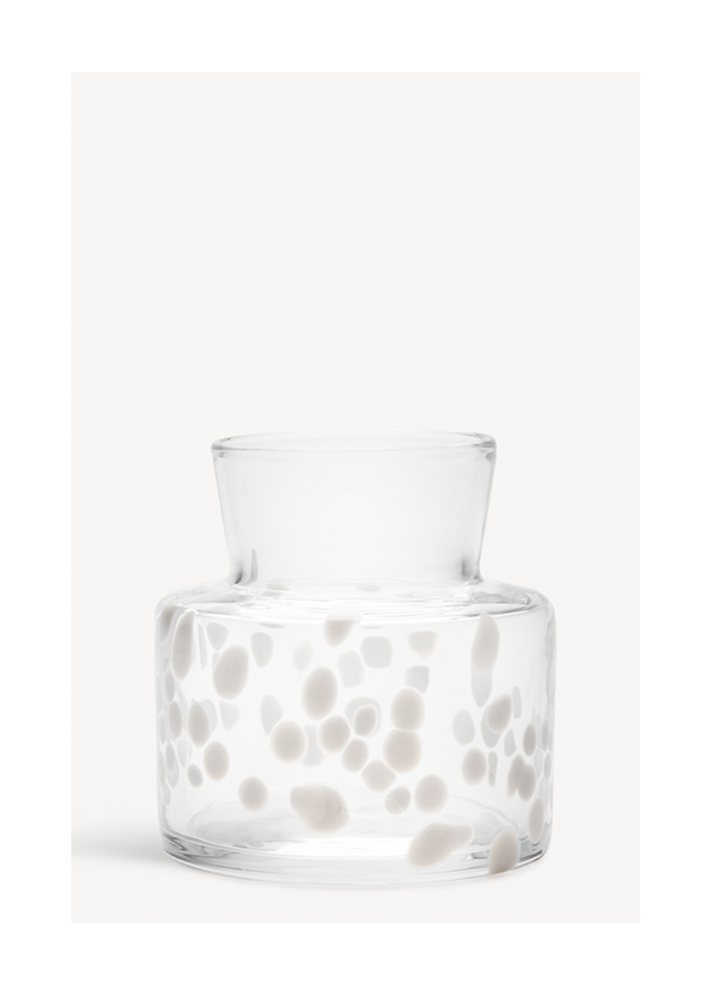 Meadow Winter is like a warm embrace, perfect for creating flower arrangements like a small meadow frozen in time. During the production the vases are rolled in crushed pieces of white glass, which makes each vase unique. The small vase from Kosta Boda is made to embrace a small bouquet, or shine bright on its own like a star during a cold winter night. Design by Sara Persson.