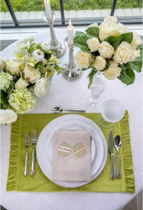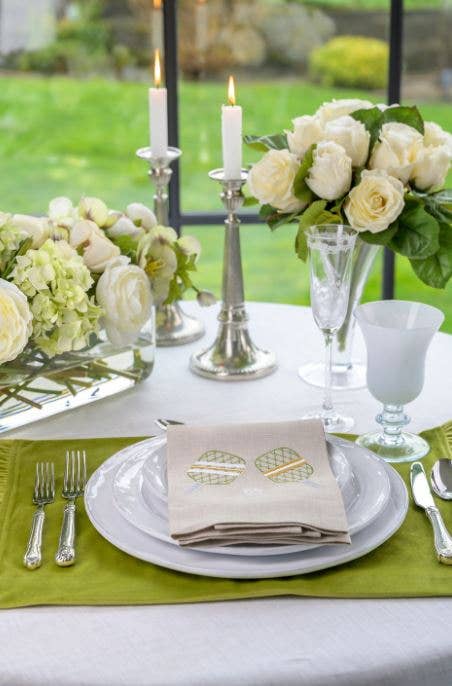 Dress up that kitchen or bath with this beautiful 100% European linen embroidered towel. So many ways to add beauty to any part of your home. Machine wash and iron flat for a crisp look. Measures 17"x29".