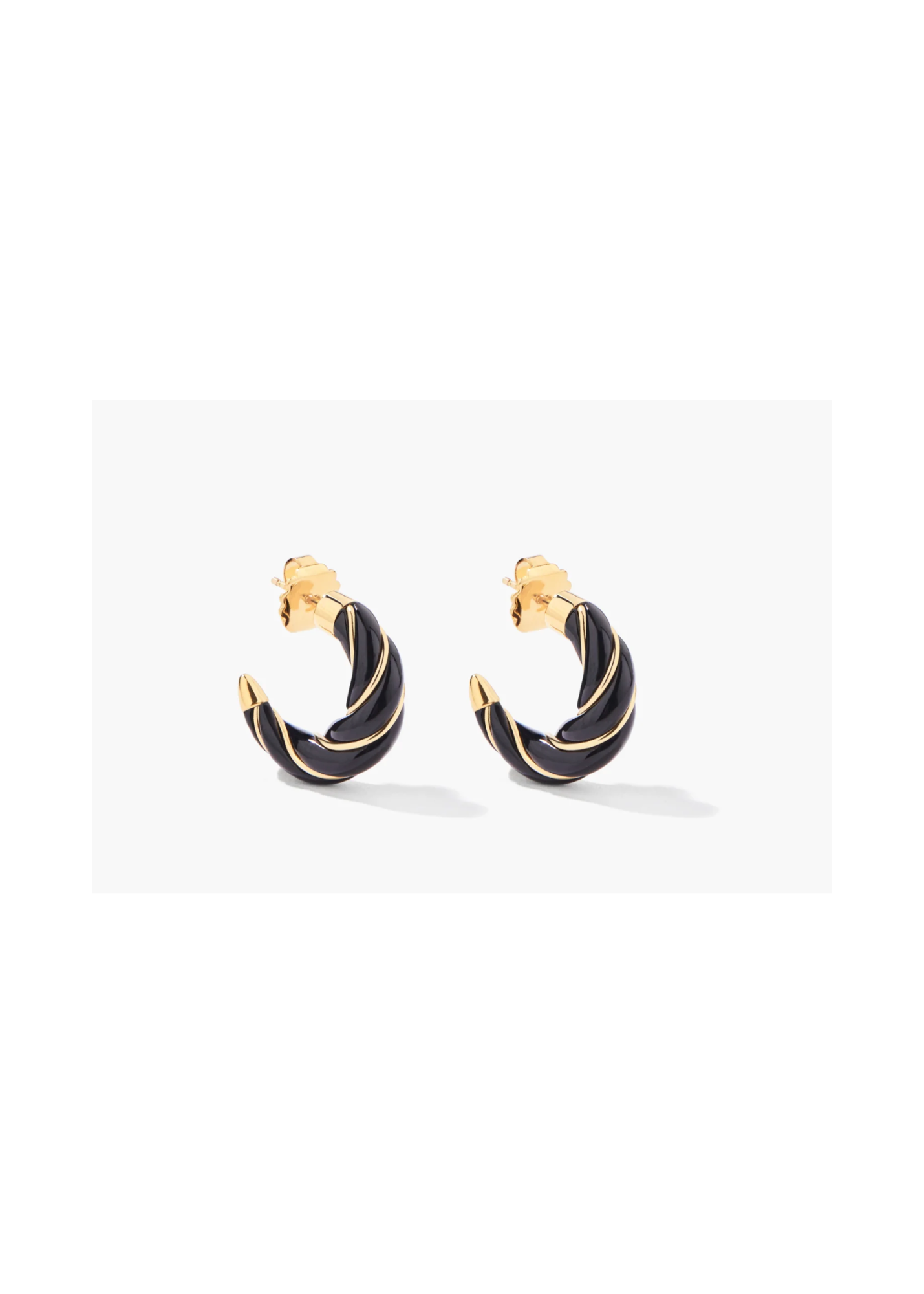 The Diana family is on board, with a brand-new series of rings and hoop earrings, delicately interlaced with gilded metal, available in green, black and a delicate shade of ivory.