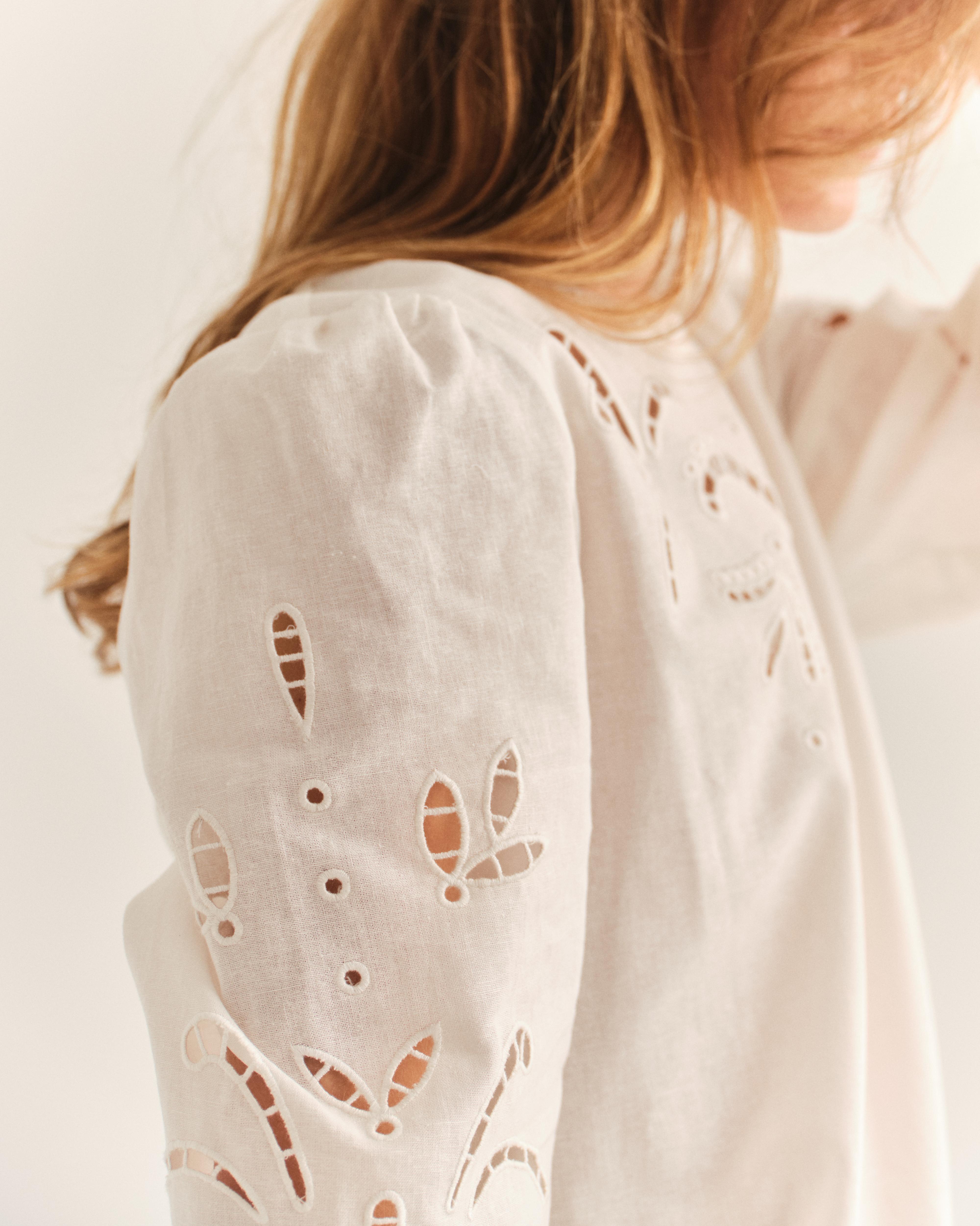 - Signature Embroidery: Engineered cotton design with hand-cutwork detail