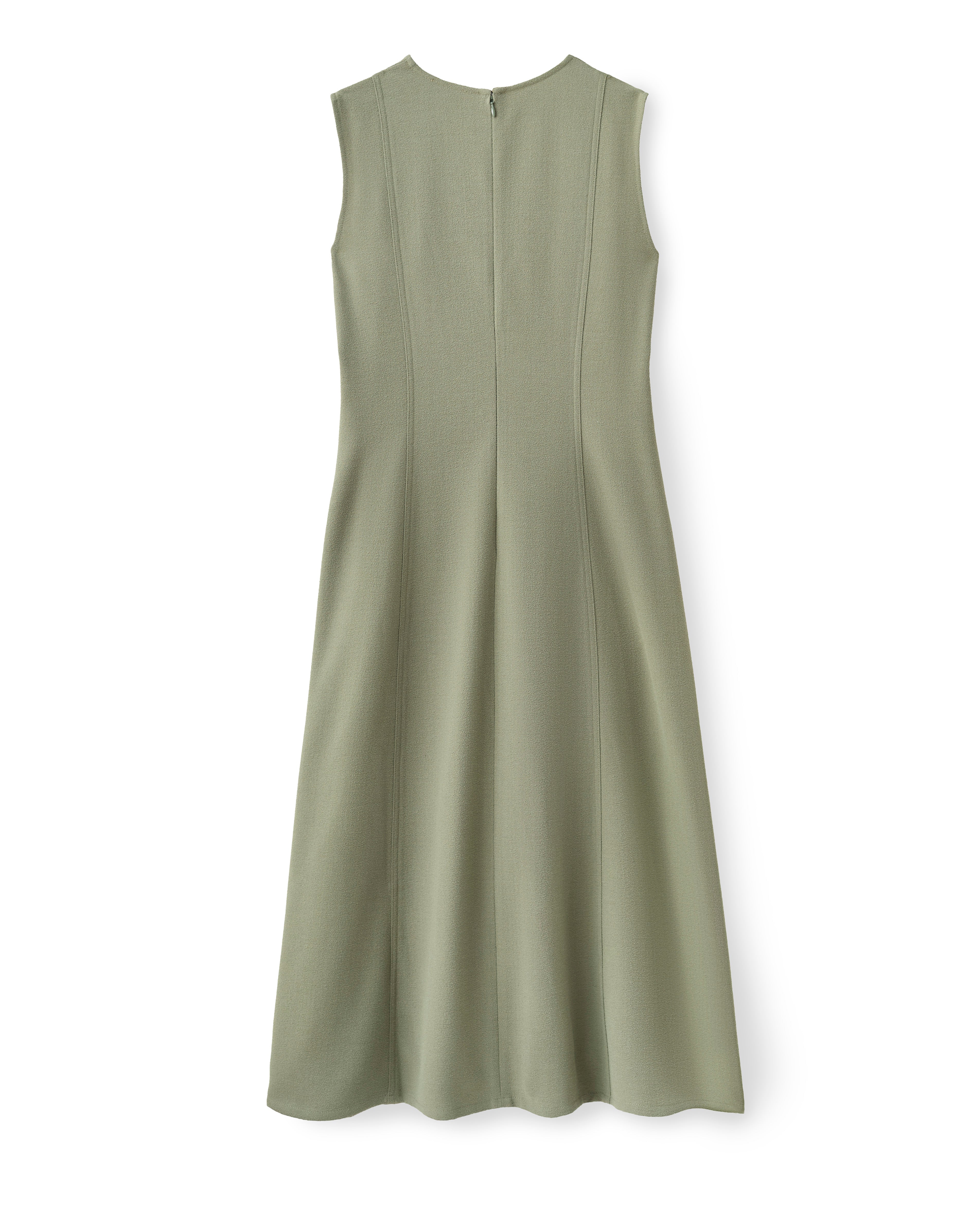 This rayon blend, pebbled texture crepe is our favorite transeasonal fabric and new wardrobe staple. The midi length Rain dress touts contrast vertical seams perfect for work to dinner.