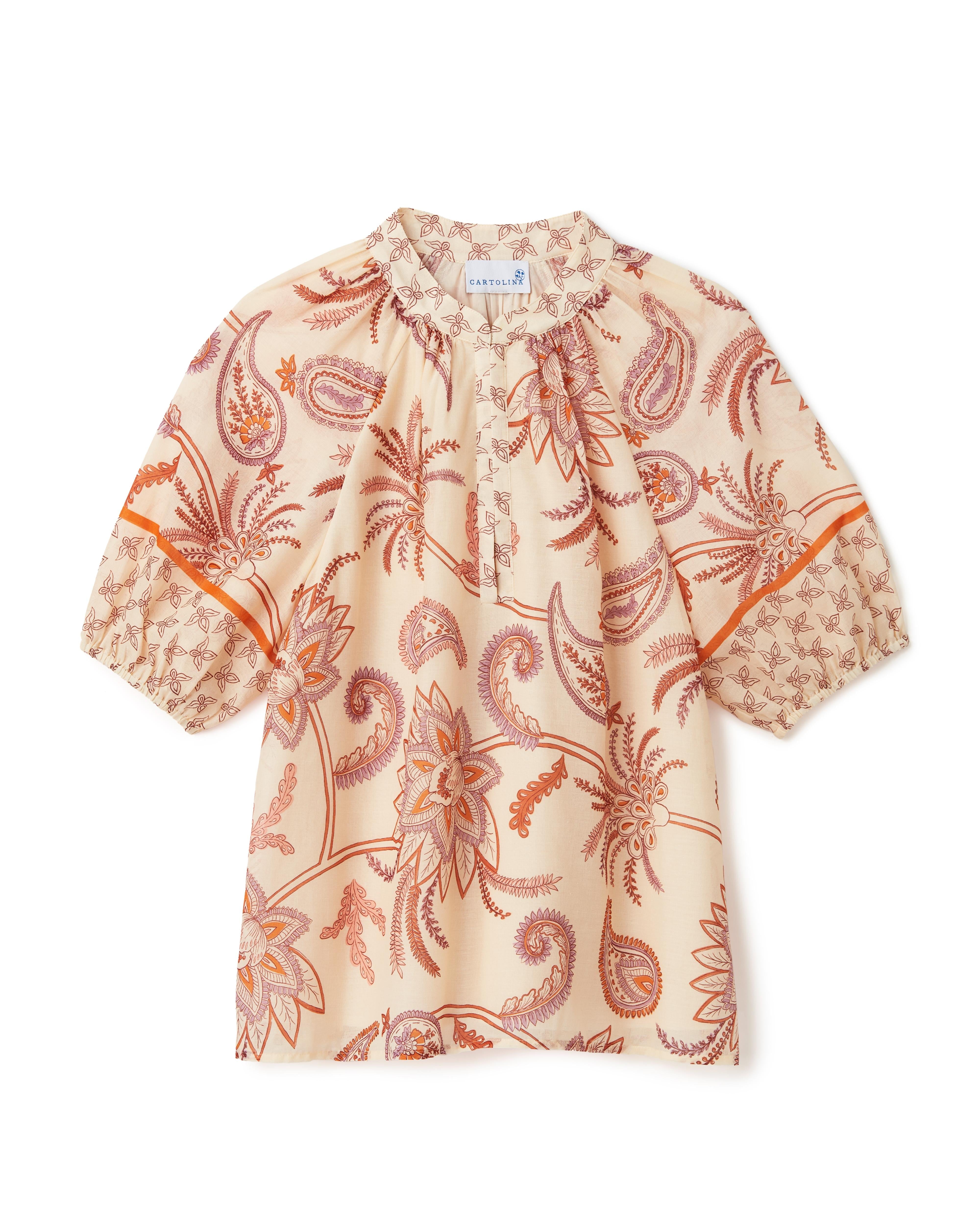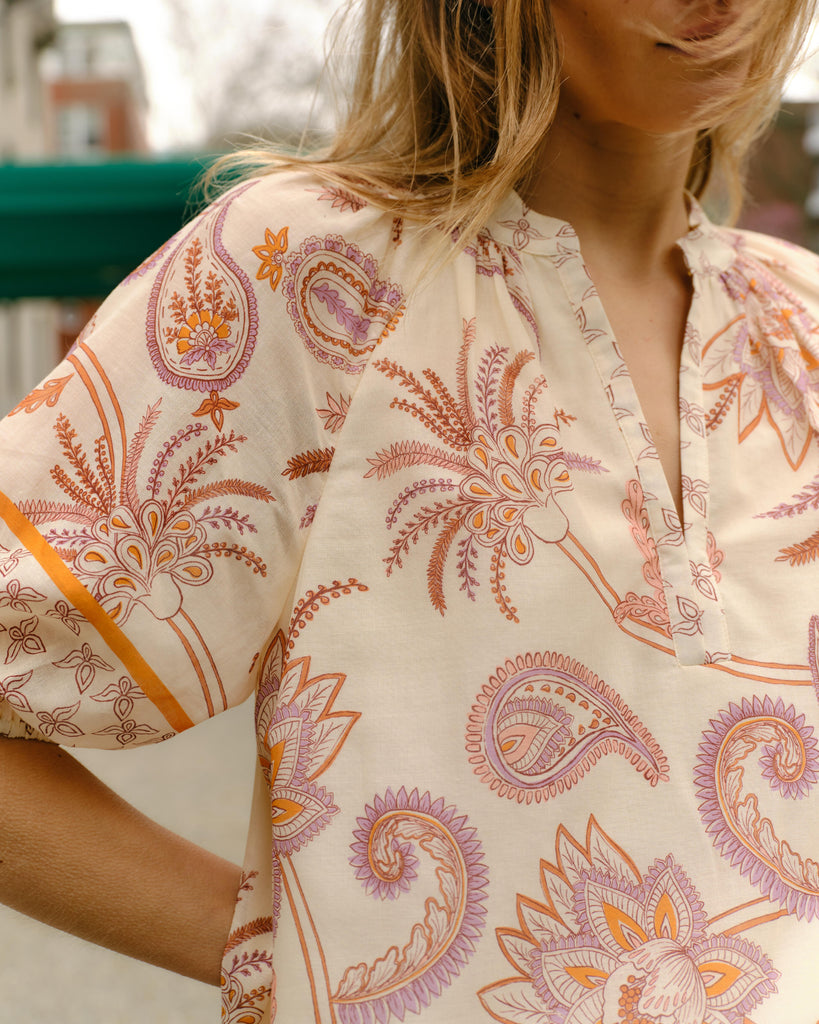 The Sandra Top in Rosecliff Garden captures a quiet beauty and dappled with painterly detail. Its soft shape and romantic print feel equally at home in the city or the countryside.