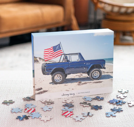 Get ready to take a ride with the American Bronco Puzzle, a 500 piece puzzle that features stunning photography from our best selling book Beach Rides. This high end puzzle is perfect for those who love a challenge and appreciate beautiful art. With its sturdy pieces and vibrant colors, this puzzle is sure to provide hours of entertainment for puzzle enthusiasts of all levels.
