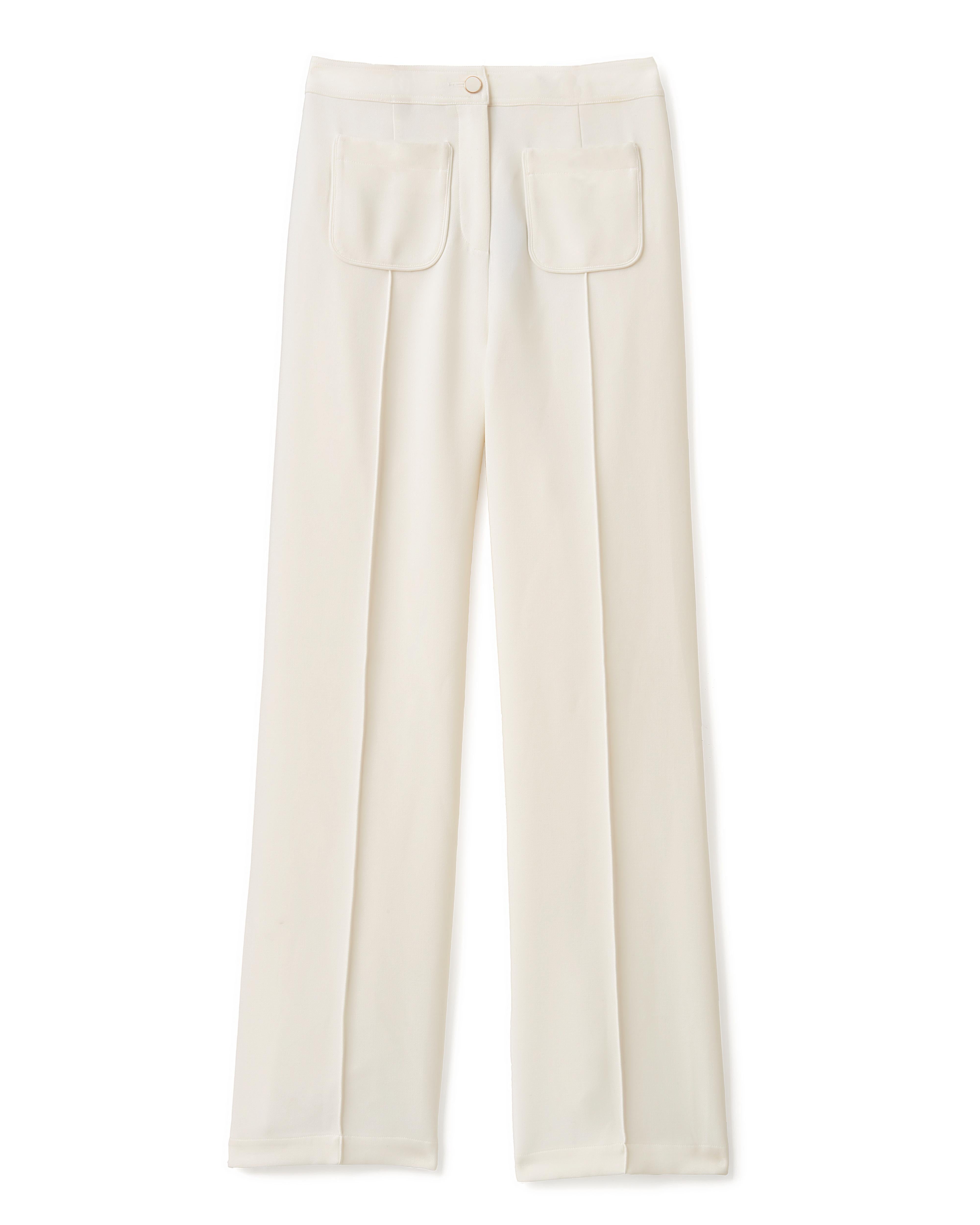 Polished and timeless, this high-waisted trouser is tailored to elongate the leg with clean lines and subtle detail. Crafted in a luxurious crepe, it’s the kind of piece that carries you from day to night with ease.