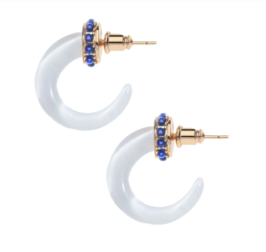 A chic curve of mother of pearl, accents of lapis, pops of gold... A classic color combination. What more could we want in an earring to carry us through from Summer to Fall? These lightweight earrings are the perfect match back, but they are also a great neutral to wear with any JW pendant!