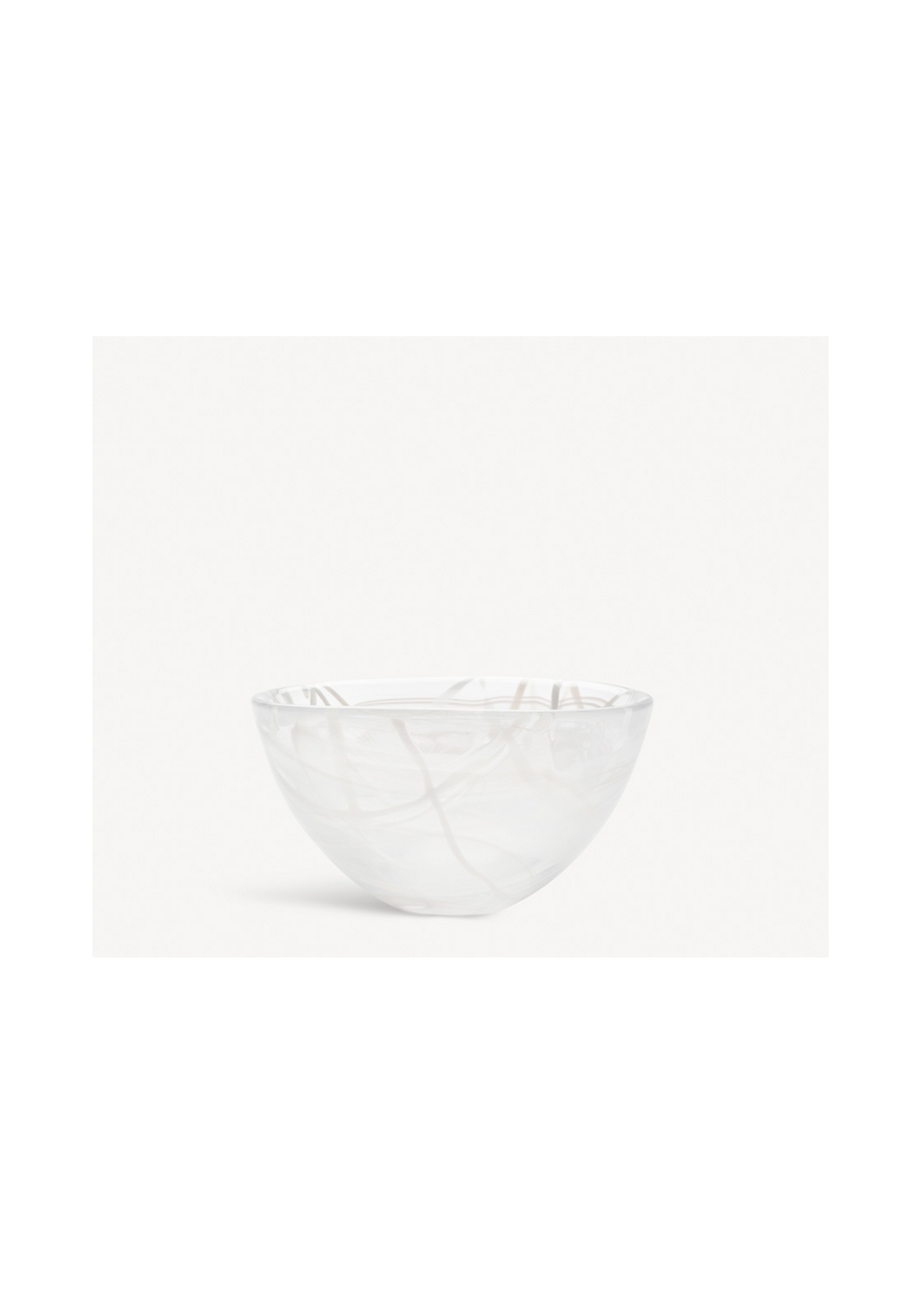 Contrast from Kosta Boda is made using a technique called centrifuging. This technique creates veils within the glass, making each product unique. The medium bowl is beautiful on its own or as a fruit bowl. Design by Anna Ehrner.