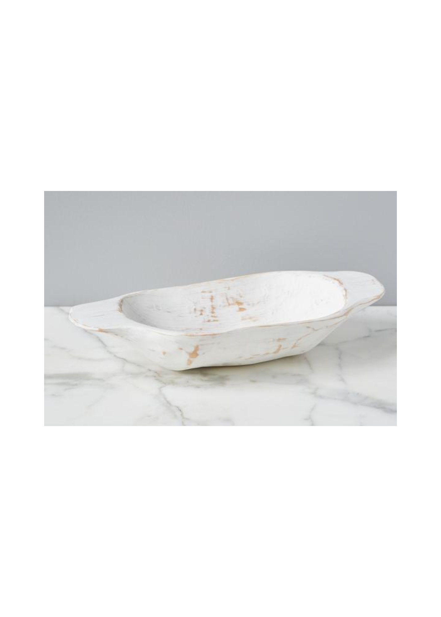 Handcrafted by European artisans, the vintage-inspired Dough Bowls were inspired by those that were once used for making and kneading dough. Redesigned for the modern home, the dough bowls have been covered in a sleek high gloss white plant-based wax. Each wooden bowl is handcrafted from reclaimed wood, therefore maintaining its authentic markings and carvings. The artisanal nature of each small bowl makes it a special and contemporary accent for your kitchen or home.