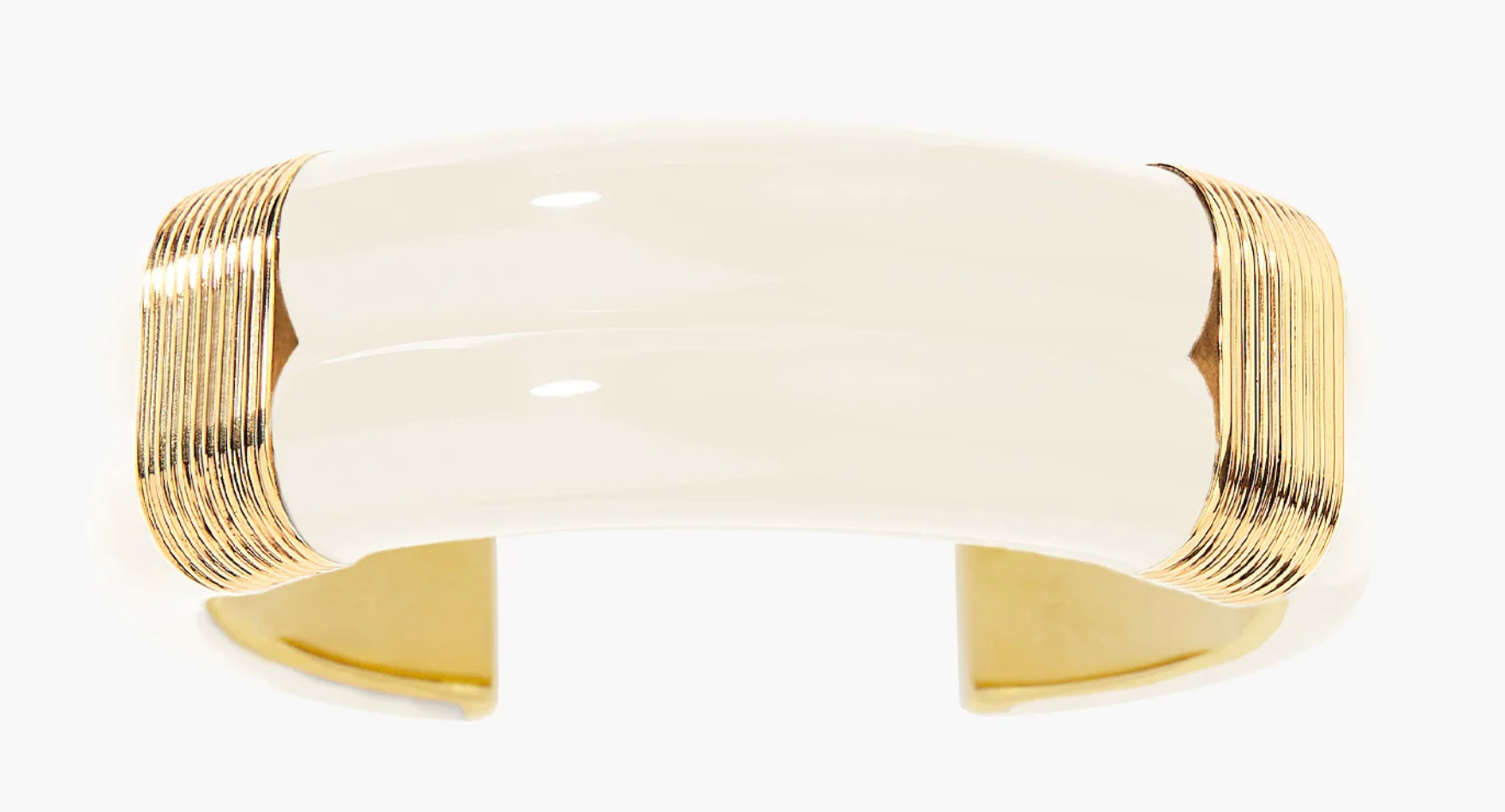 Katt double-band bracelet in ivory resin covered with a striated detail gilded in 750/1000 yellow gold.