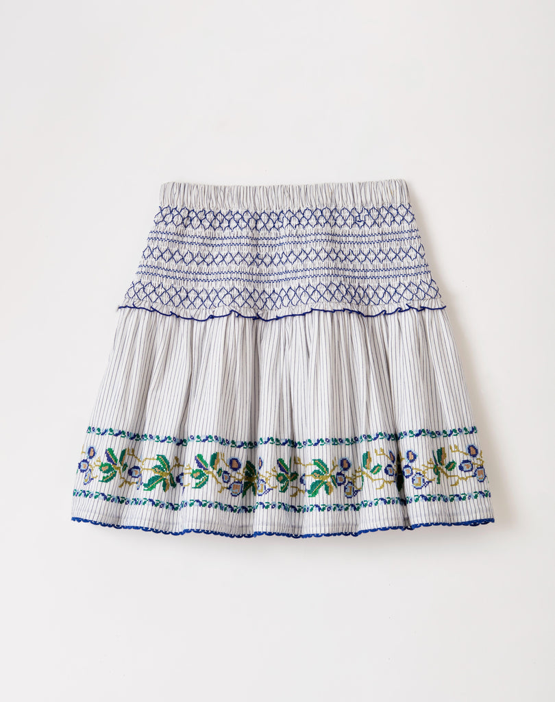 Flirty yet refined, the Kylie Mini Skirt is designed with delicate movement and artisanal detailing. Its lightweight cotton and smocked waistband create an effortless, airy silhouette.