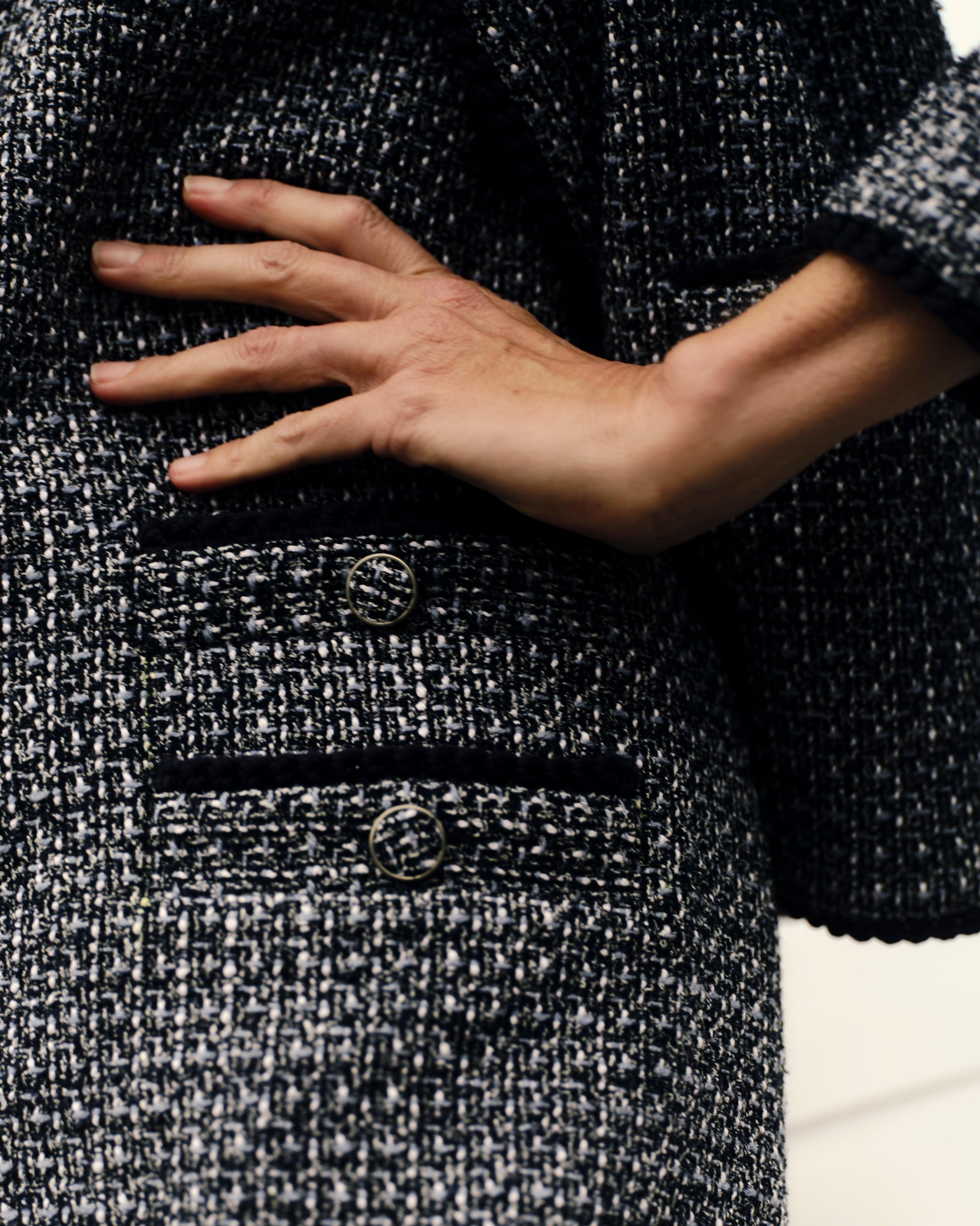 The favorite Lane Mini Dress is back in Blue Melange tweed for the perfect wear anywhere silhouette. Pair with the Louisa Jacket for a more elevated classic look or wear with a turtleneck, tights and knee high boots to create the ideal everyday look.