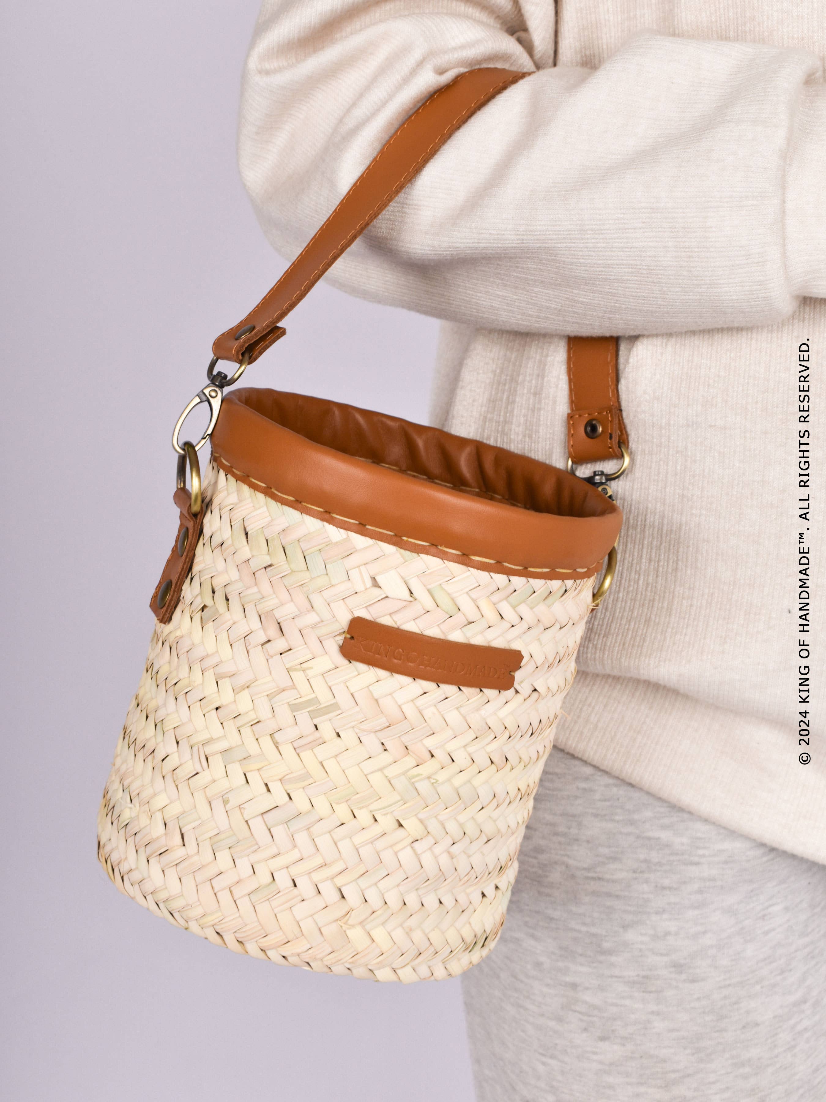 Experience style, elegance, and functionality with our exquisite Leather Bucket Bag, combining genuine leather and woven straw with double-sided lining. Handcrafted with precision, this bag is a perfect summer accessory and a great gift for brides. Its chic, vintage aesthetic makes it a trendy choice among bucket bags for women. The roomy interior accommodates all essentials, making it versatile for beach outings or casual days. The lightweight, durable design ensures easy access and longevity. This leather and straw bucket bag is not just a handbag, but a fashion statement, ideal for any occasion. Perfect as a thoughtful gift, it suits Mother's Day, anniversaries, or surprise presents. Add elegance to your summer with our Leather Bucket Bag, a testament to craftsmanship and style.