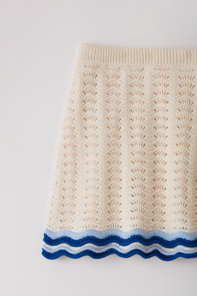 Full of playful charm and textural details, the Lyra Mini Skirt captures carefree summer style. Its crochet knit and contrast scalloped trim ensure it’s anything but ordinary.