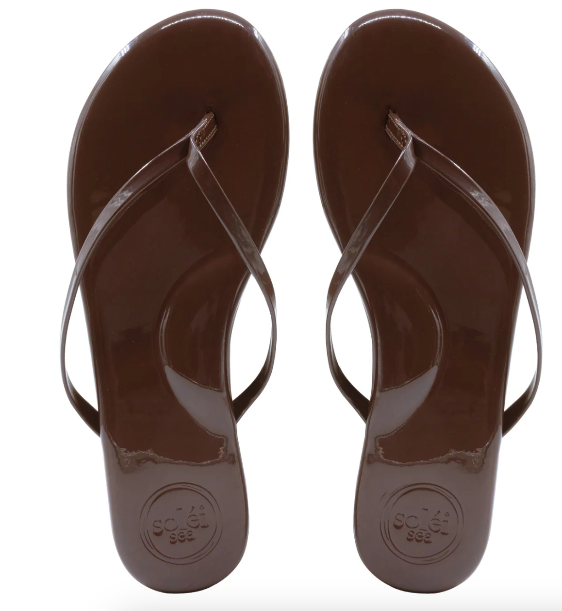 Solei Sea Thin Strap Sandal-Chocolate Patent