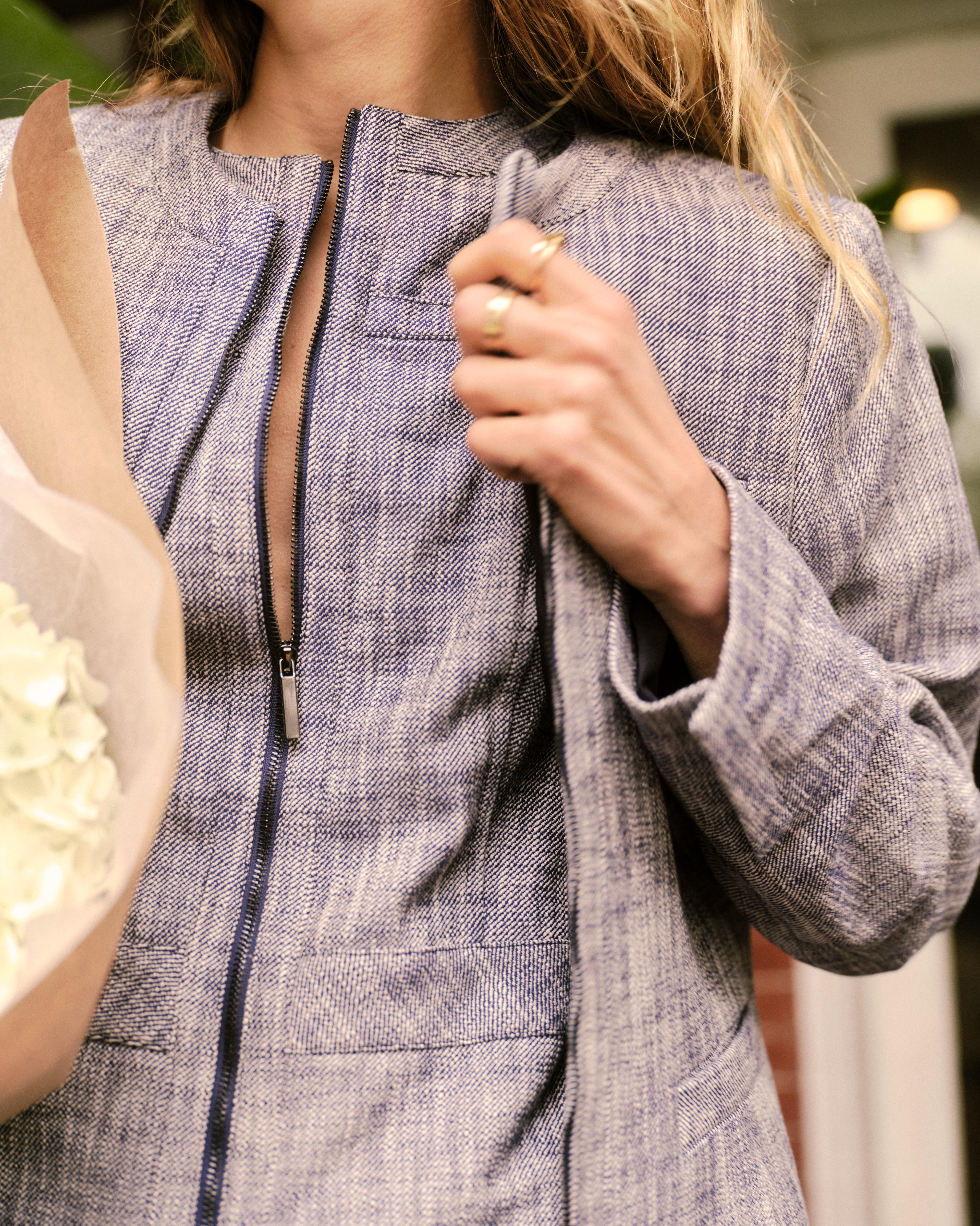 • Two-way center front zipper allows adjustable styling