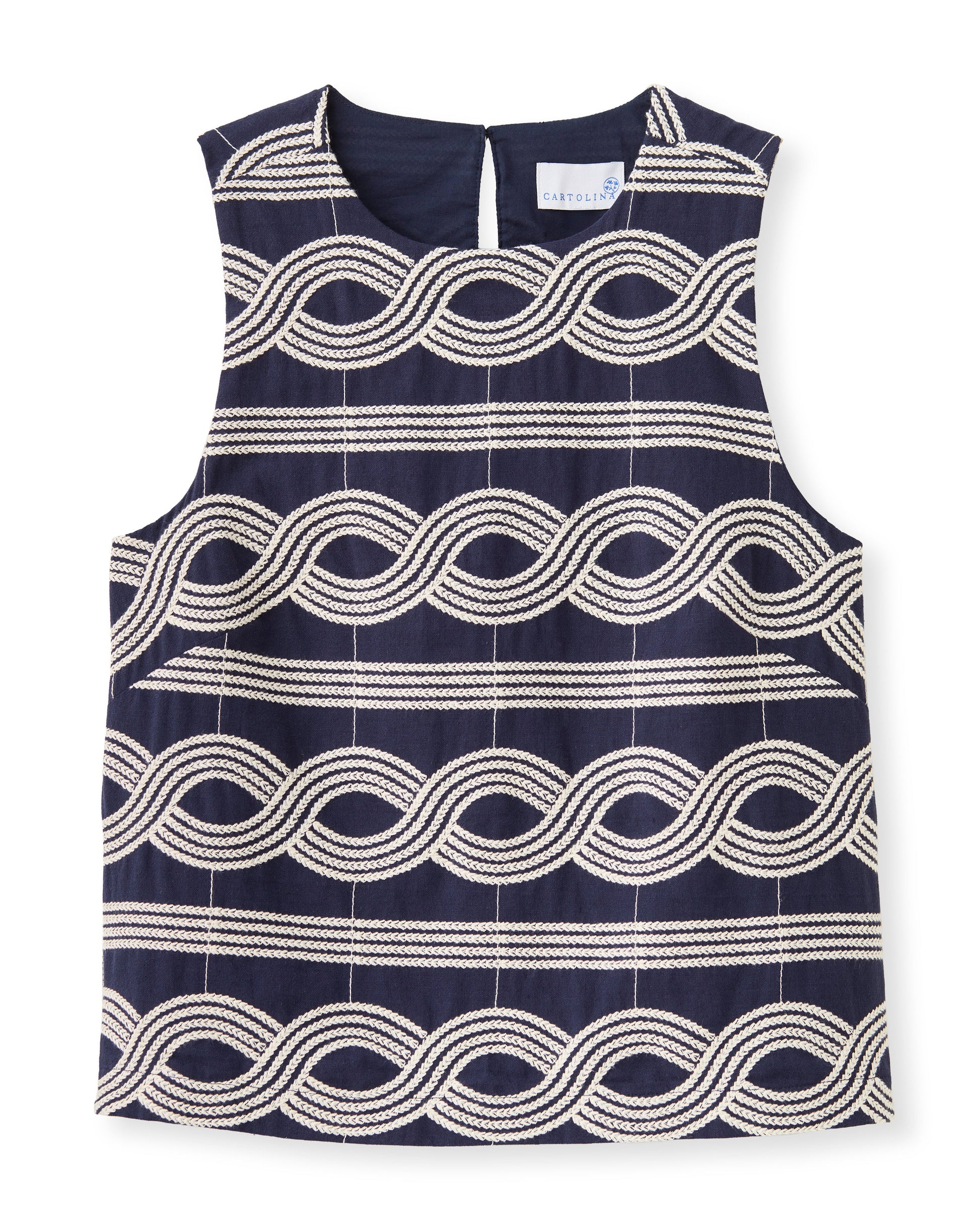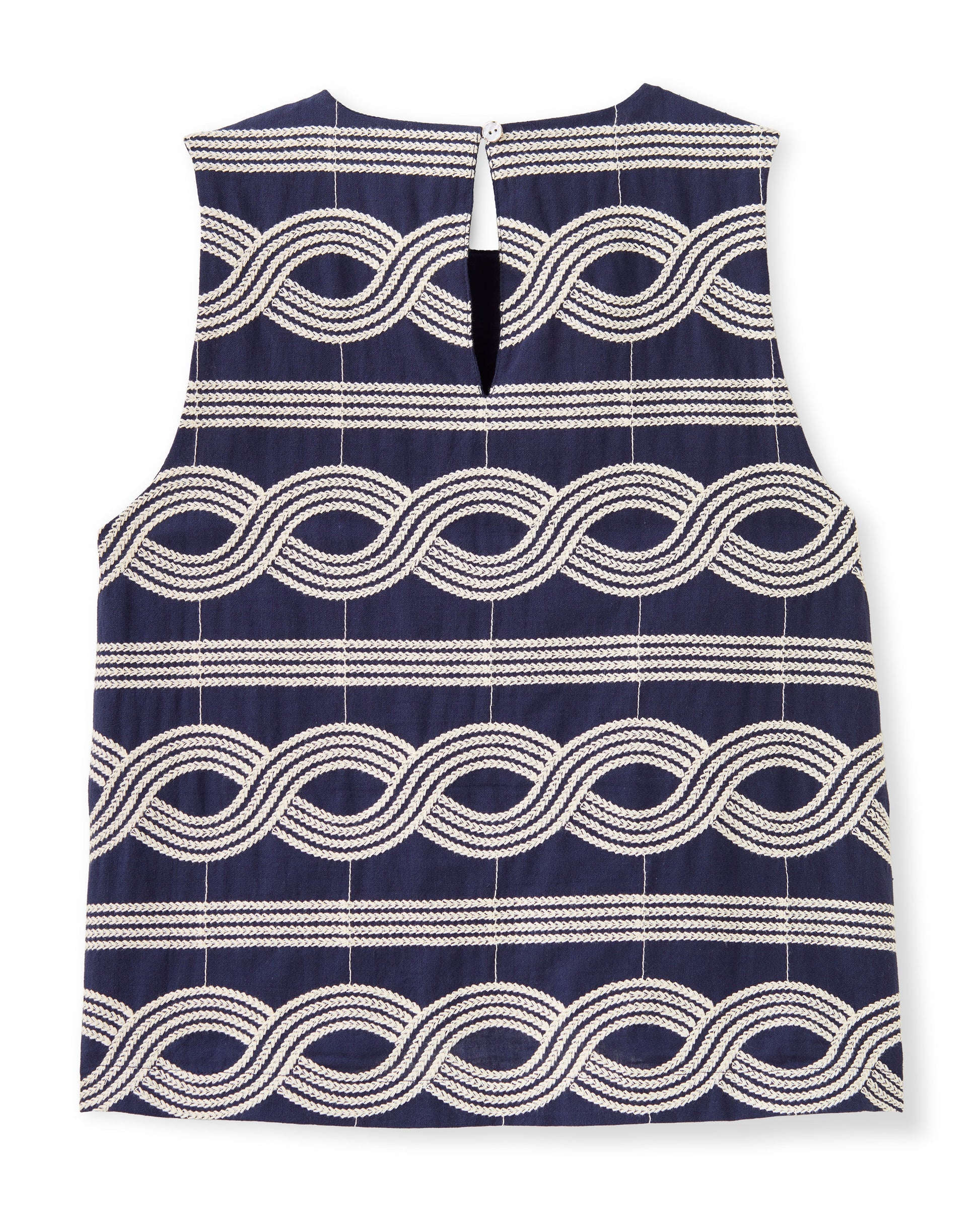 Classic scoop-neck, boxy tank silhouette crafted from a specialty embroidered linen blend