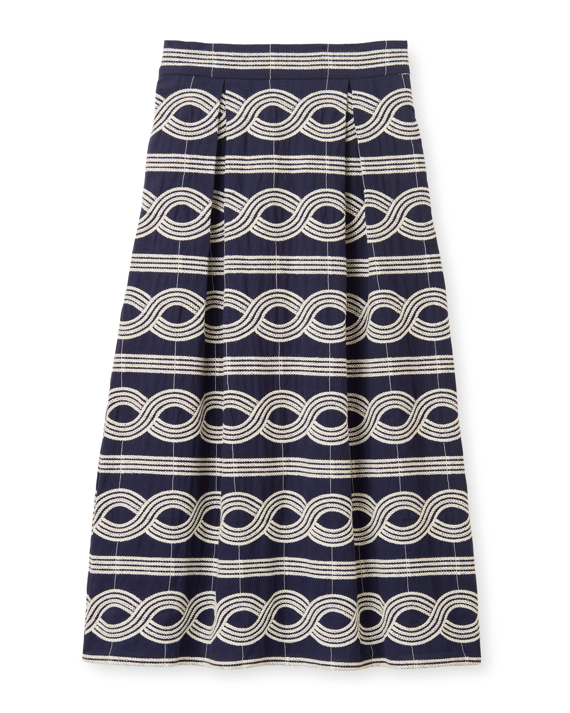 Elegant midi-length silhouette crafted from a beautifully embroidered specialty linen blend