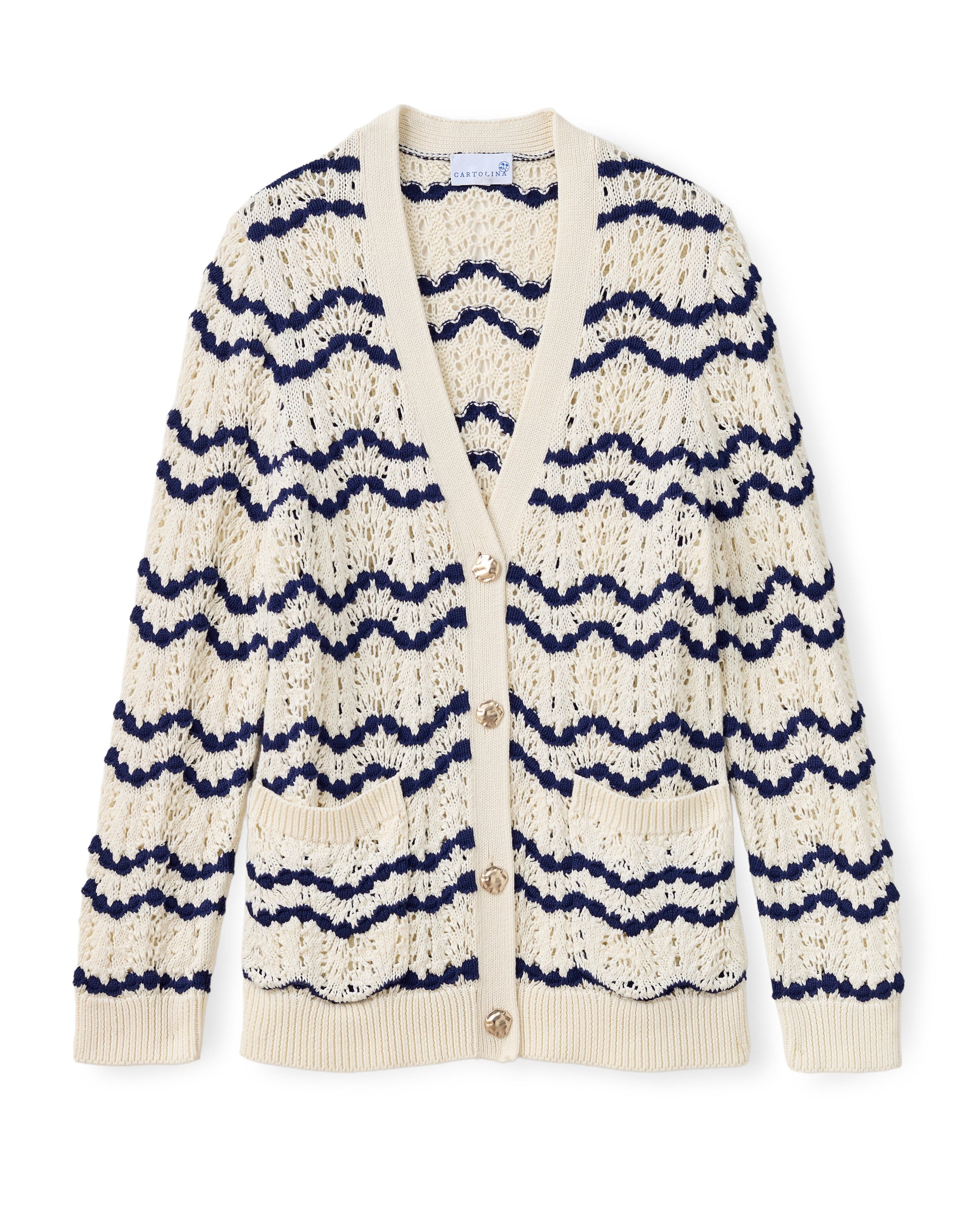 Mesmerizing patterns left in the sand by a receding tide inspired this beautifully textured pointelle knit. It acts as the perfect luxurious layer for misty mornings and cool coastal evenings.