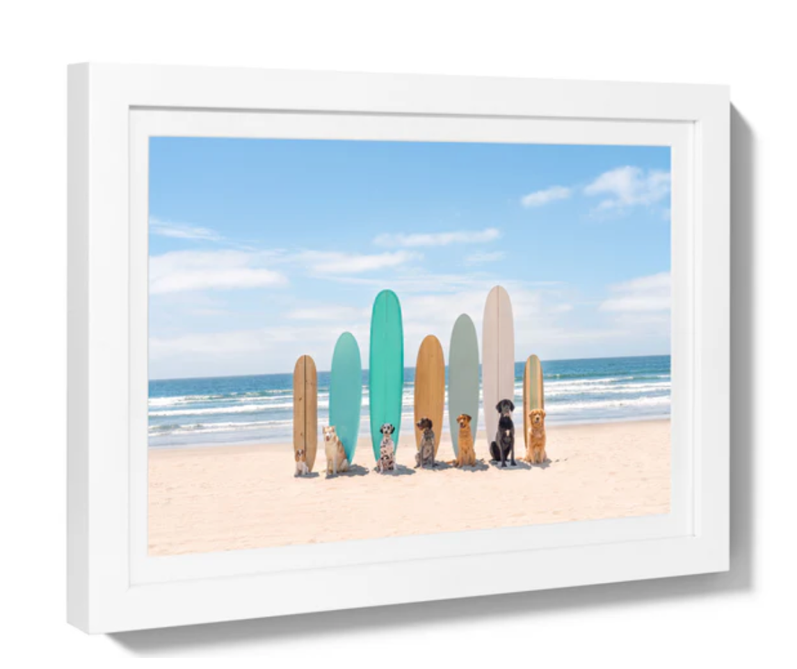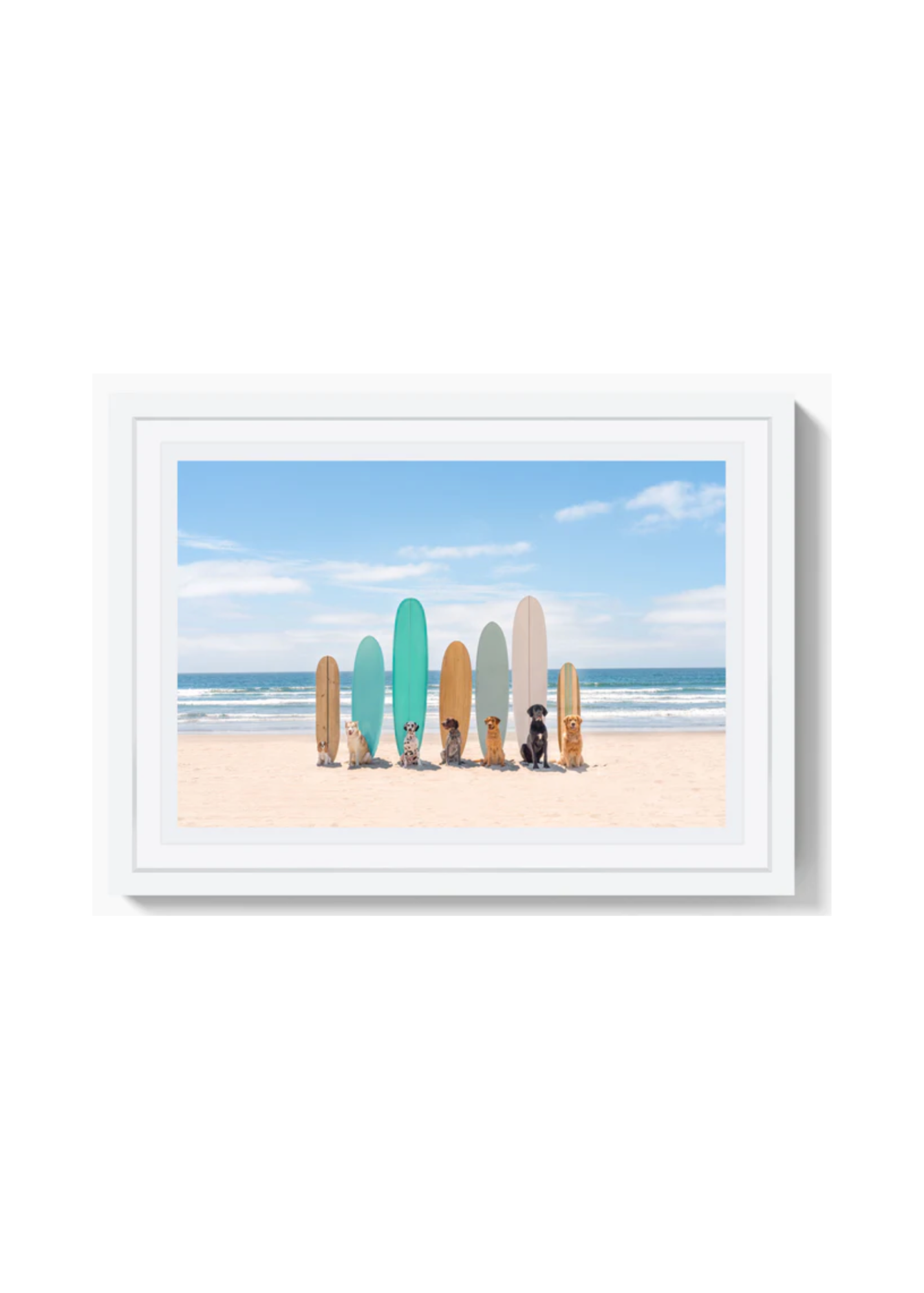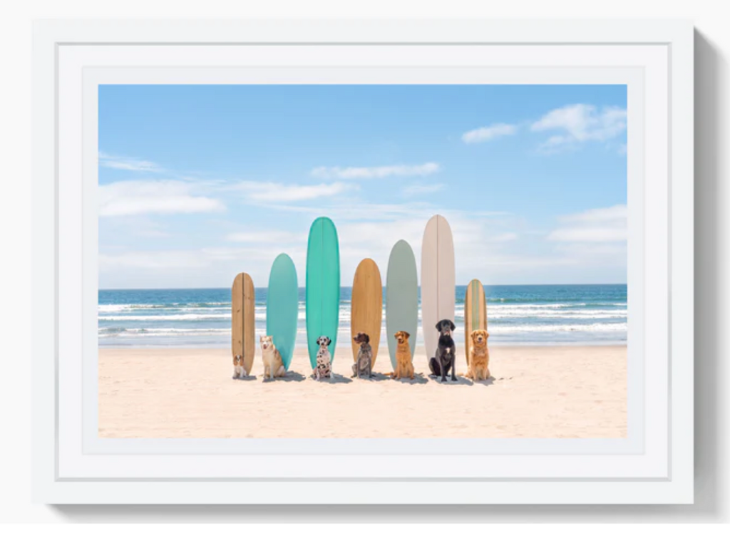 These furry friends are ready to catch some waves in SURF’S UP, SAN DIEGO from Gray’s playful Dogs of San Diego series.